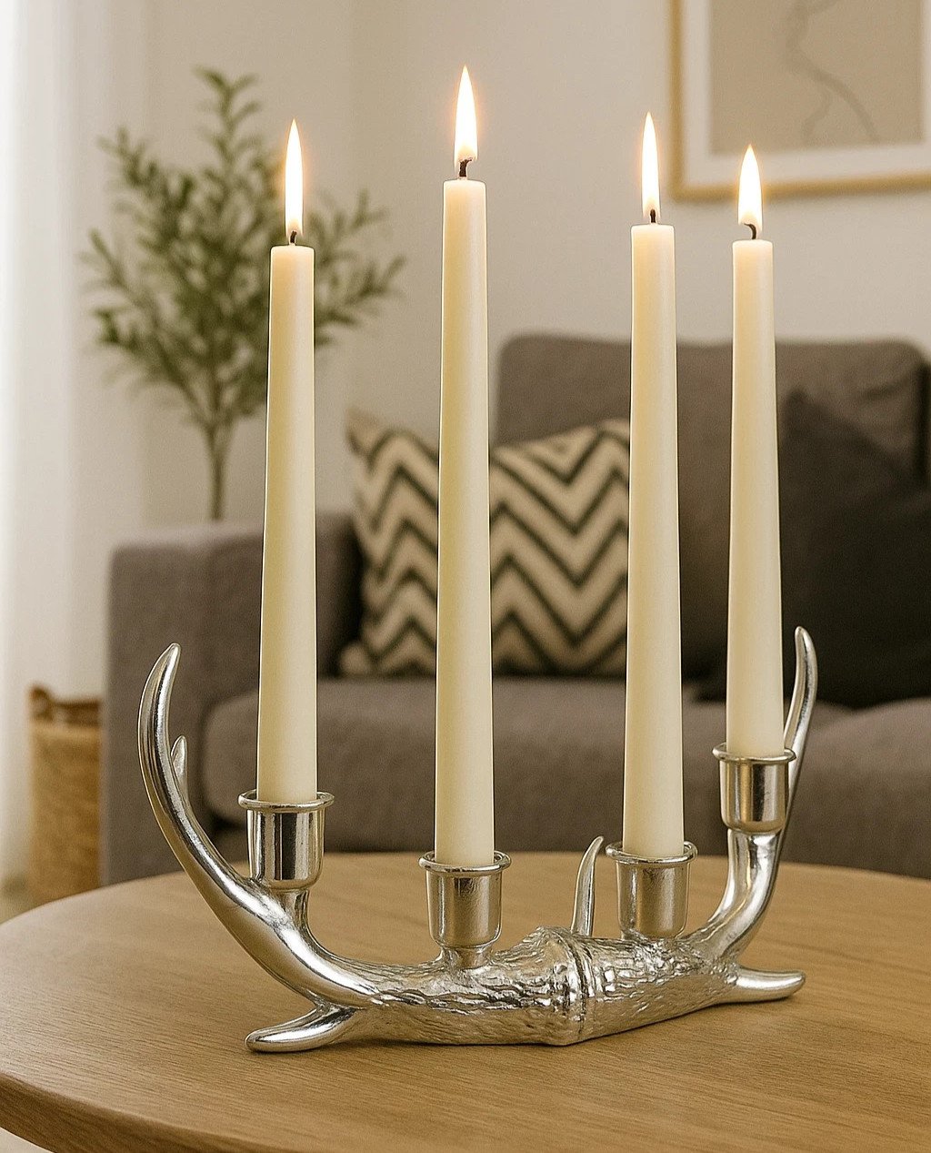 Stag Taper Candle Holder Antler Silver Christmas Ornament Deer Table Decor Home