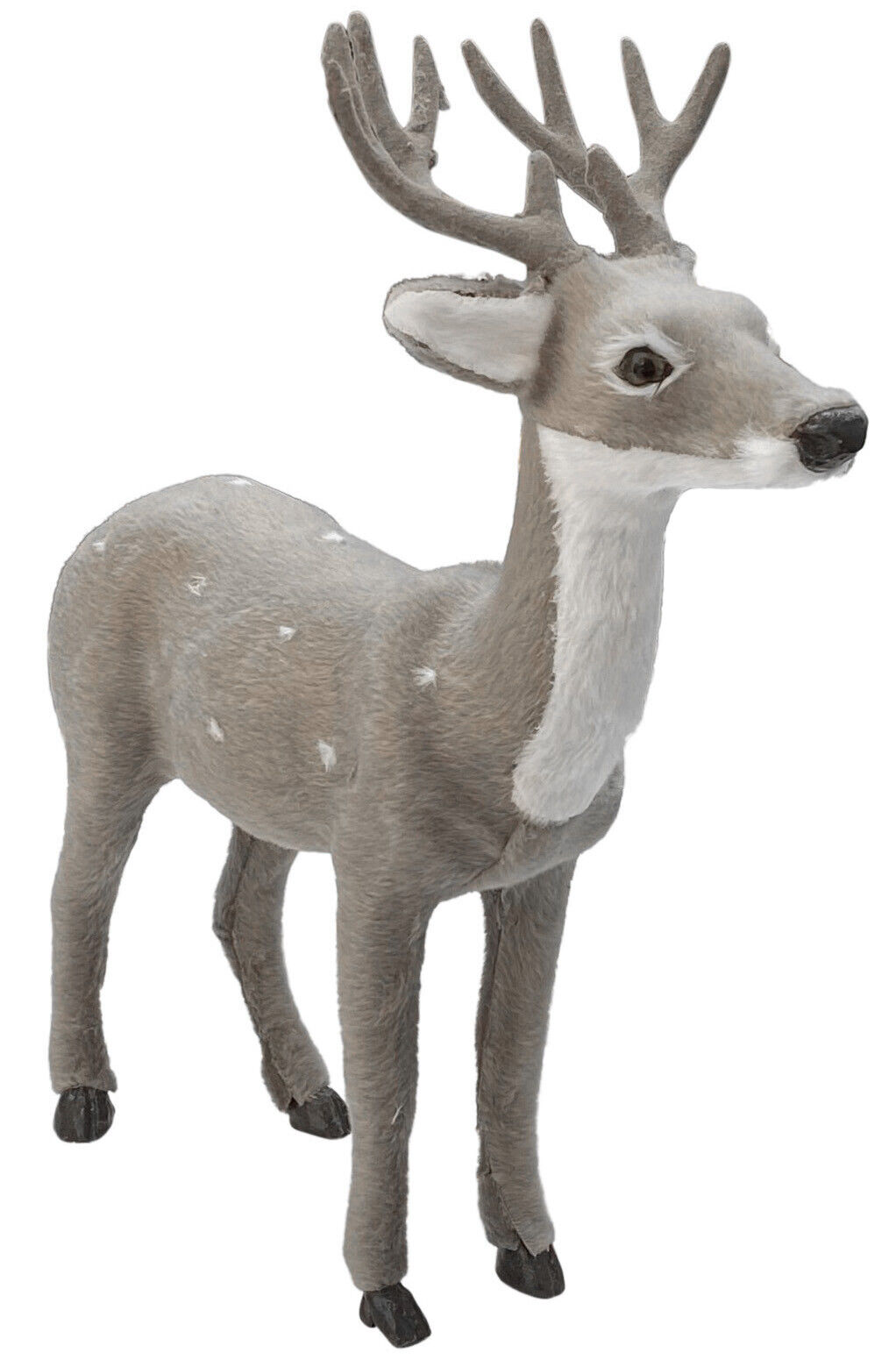 Fuzzy Grey Reindeer Figurine Soft Standing Deer Christmas Ornament Winter Stag