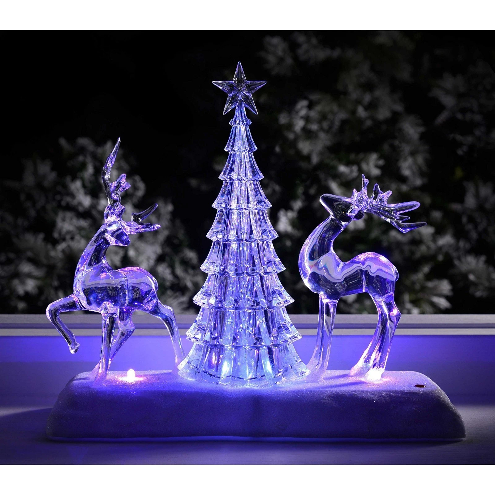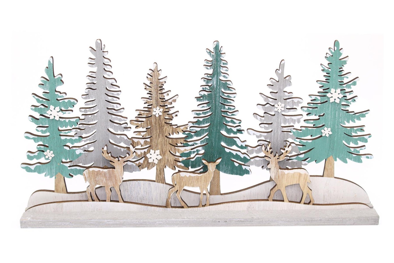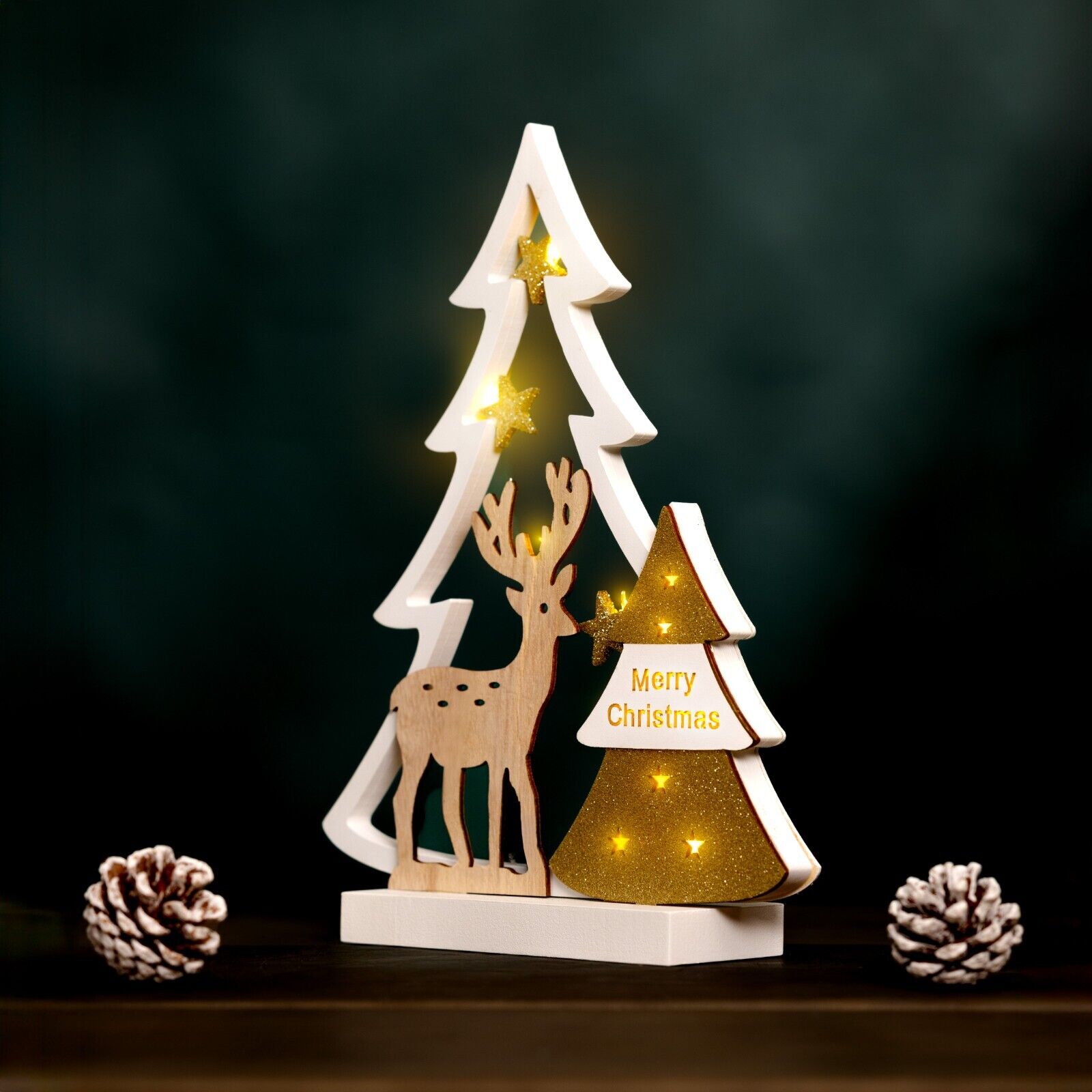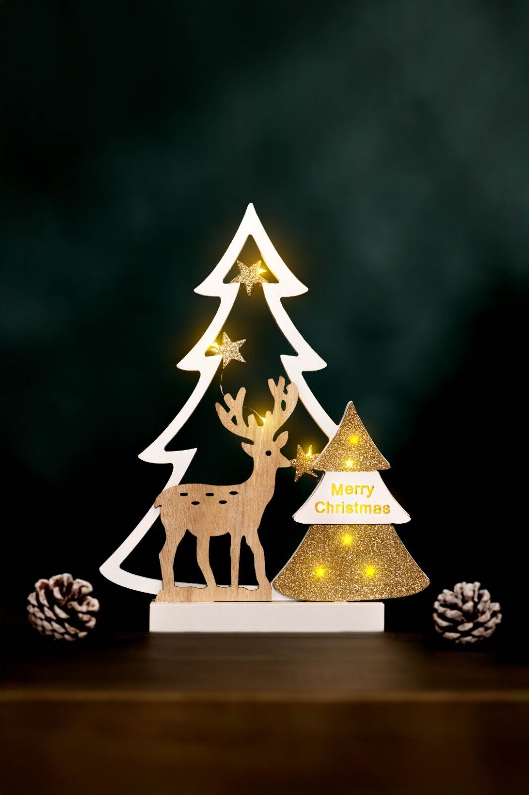 Christmas Wooden Scene Decoration LED Tree Stag Pre-Lit Xmas Ornament Reindeer