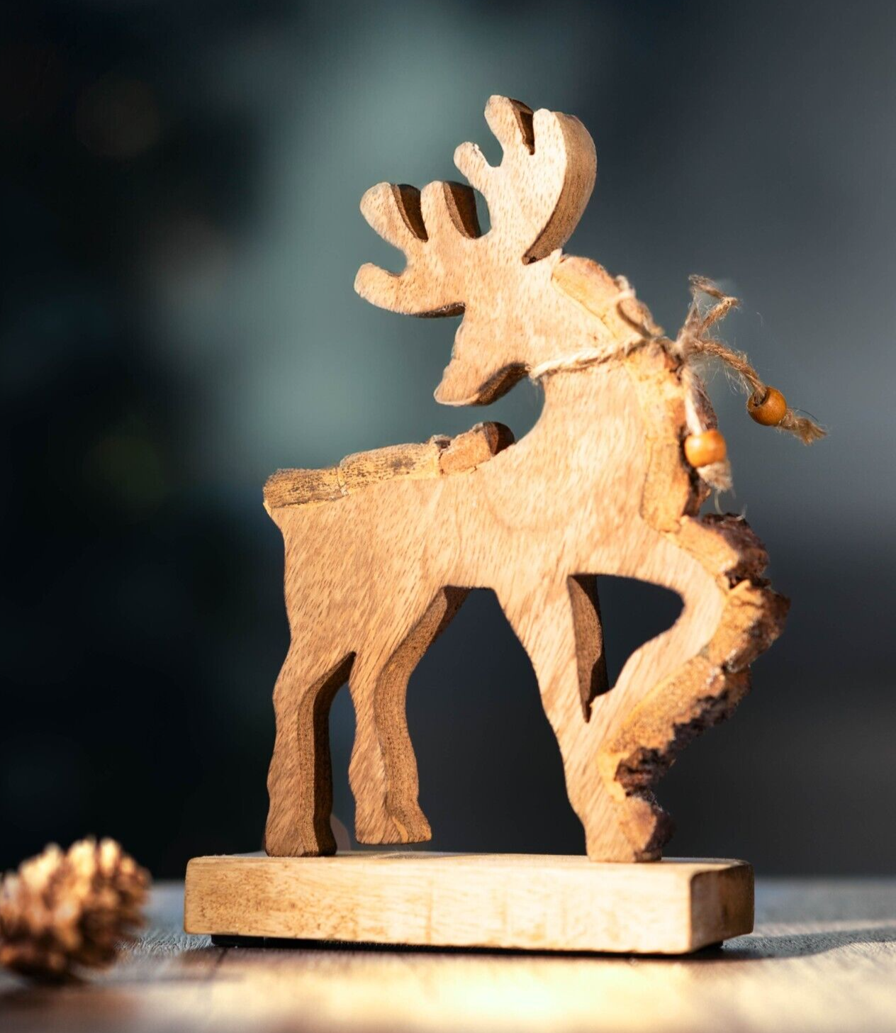 Reindeer Stag Wooden Winter Woodland Forest Christmas Ornament Decoration