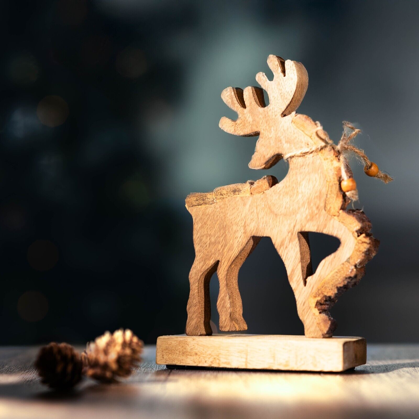 Christmas Reindeer Stag Ornament Decoration Mango Wood Home Decor Xmas 17cm Gift