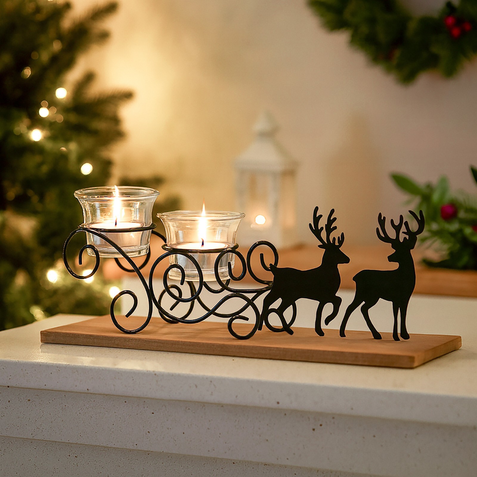 Christmas Reindeer Candle Holder Decoration Tealight Sleigh Ornament Xmas Stag