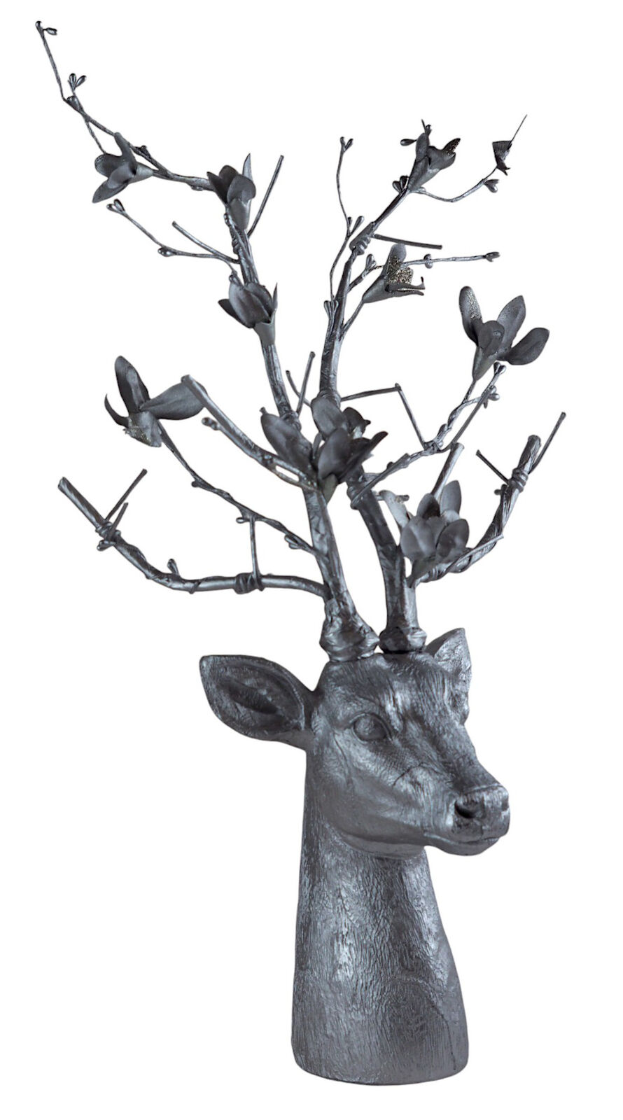 Silver Reindeer Stag Freestanding 45cm Bust Head Christmas Ornament