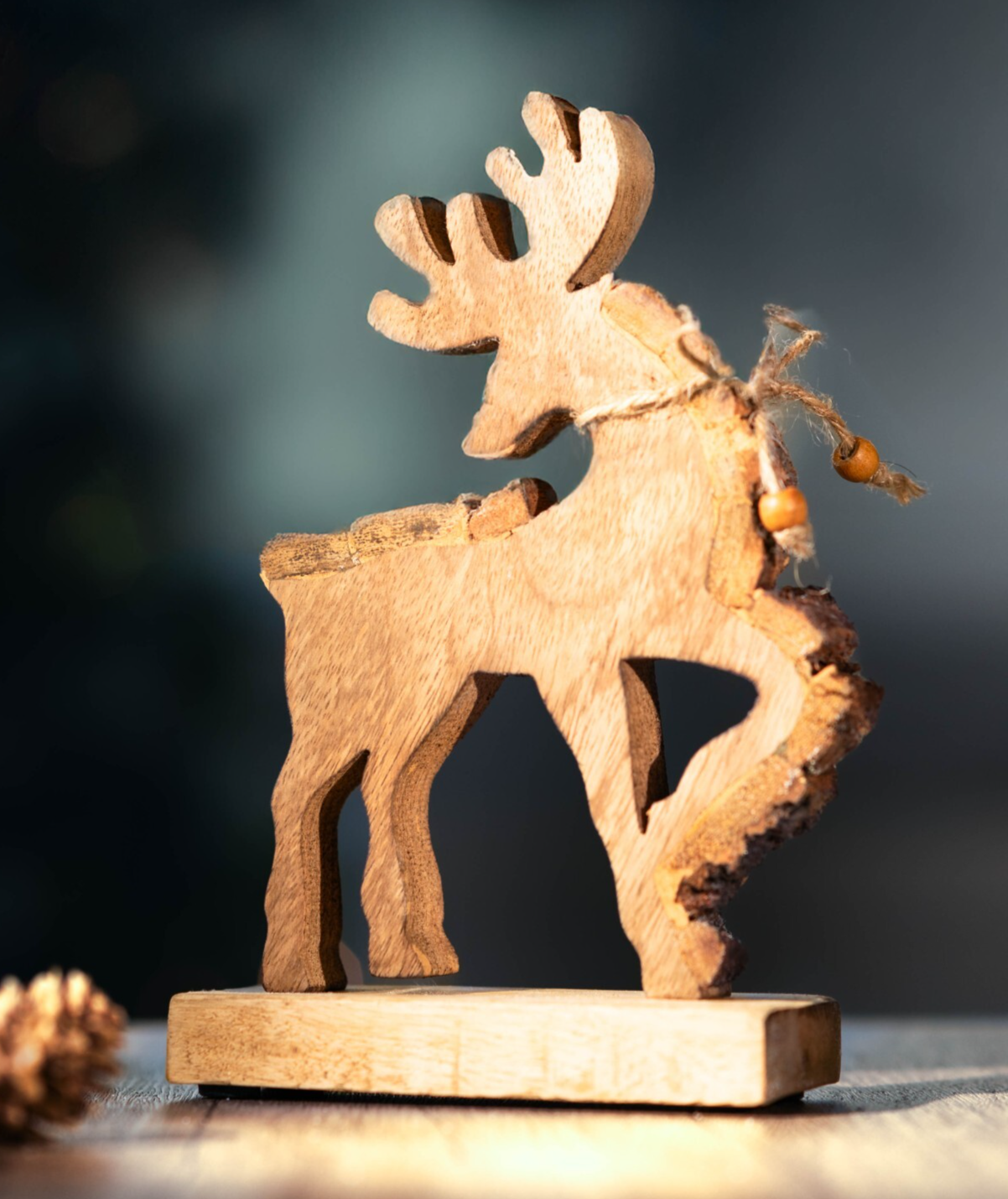 Christmas Reindeer Wooden Ornament Stag Antler Home Decor Natural Wood 17cm Xmas