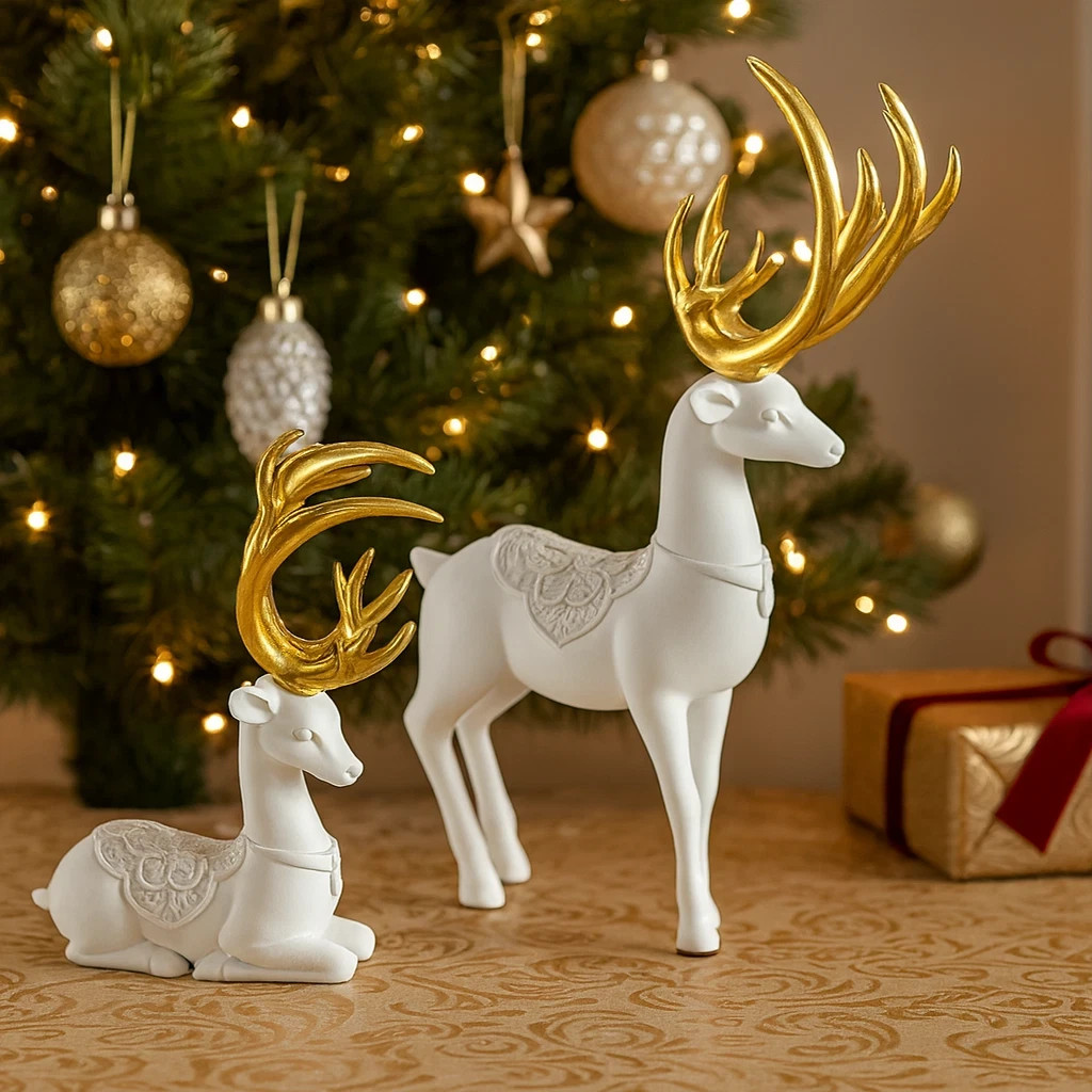 Gold Reindeer Ornament Christmas Decoration Standing Stag Figure Xmas Home Decor