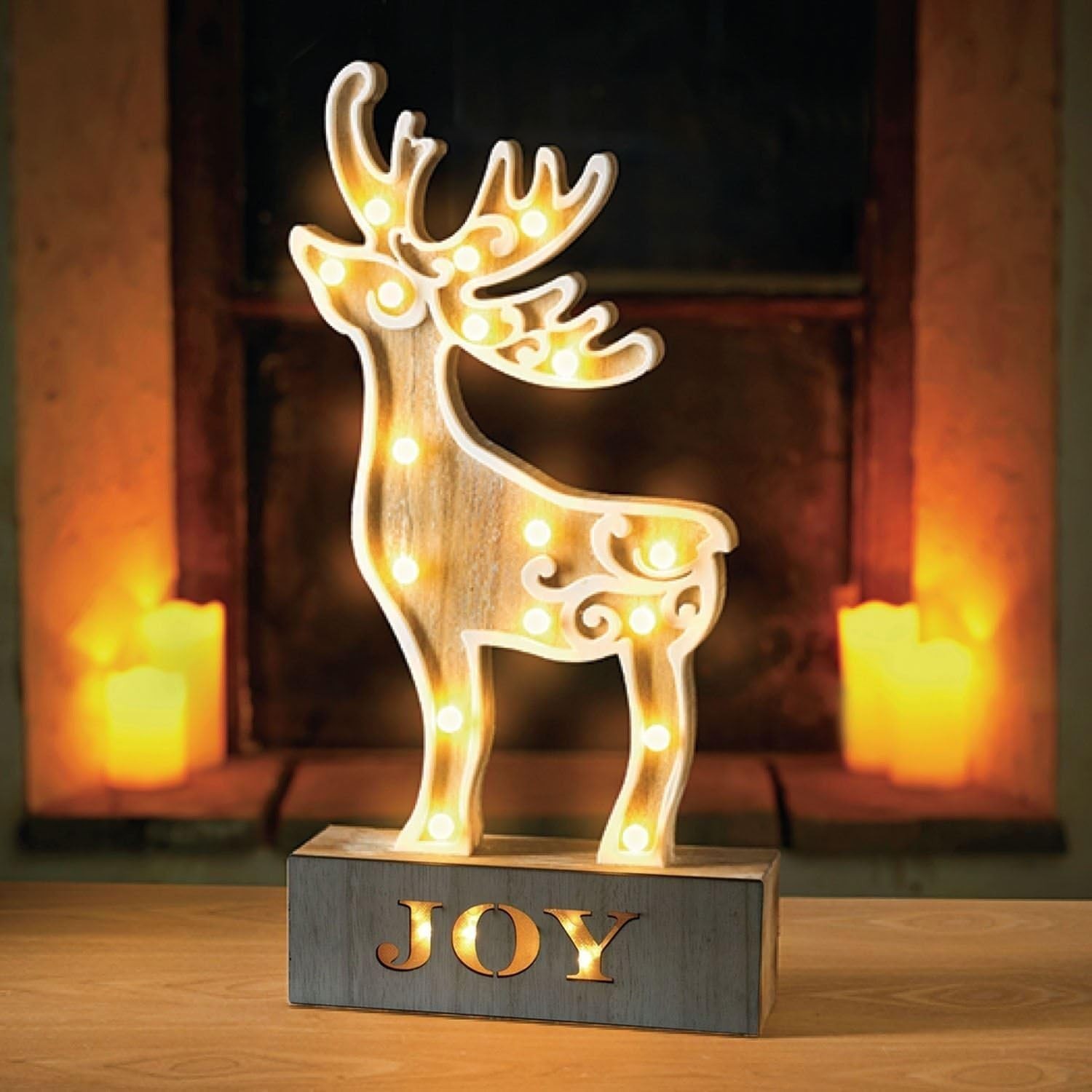 Christmas LED light up wooden stag reindeer ornament decor Joy