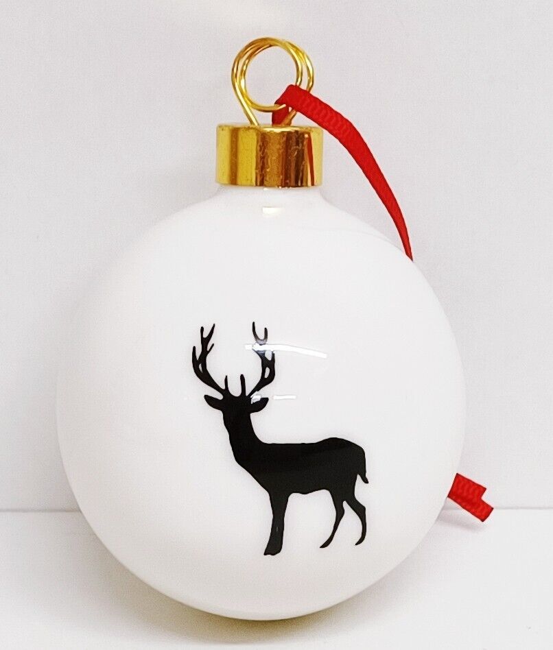 Stags Bauble Fine Bone China 7 cm Gift Boxed Stag Silhouette Christmas Ornament