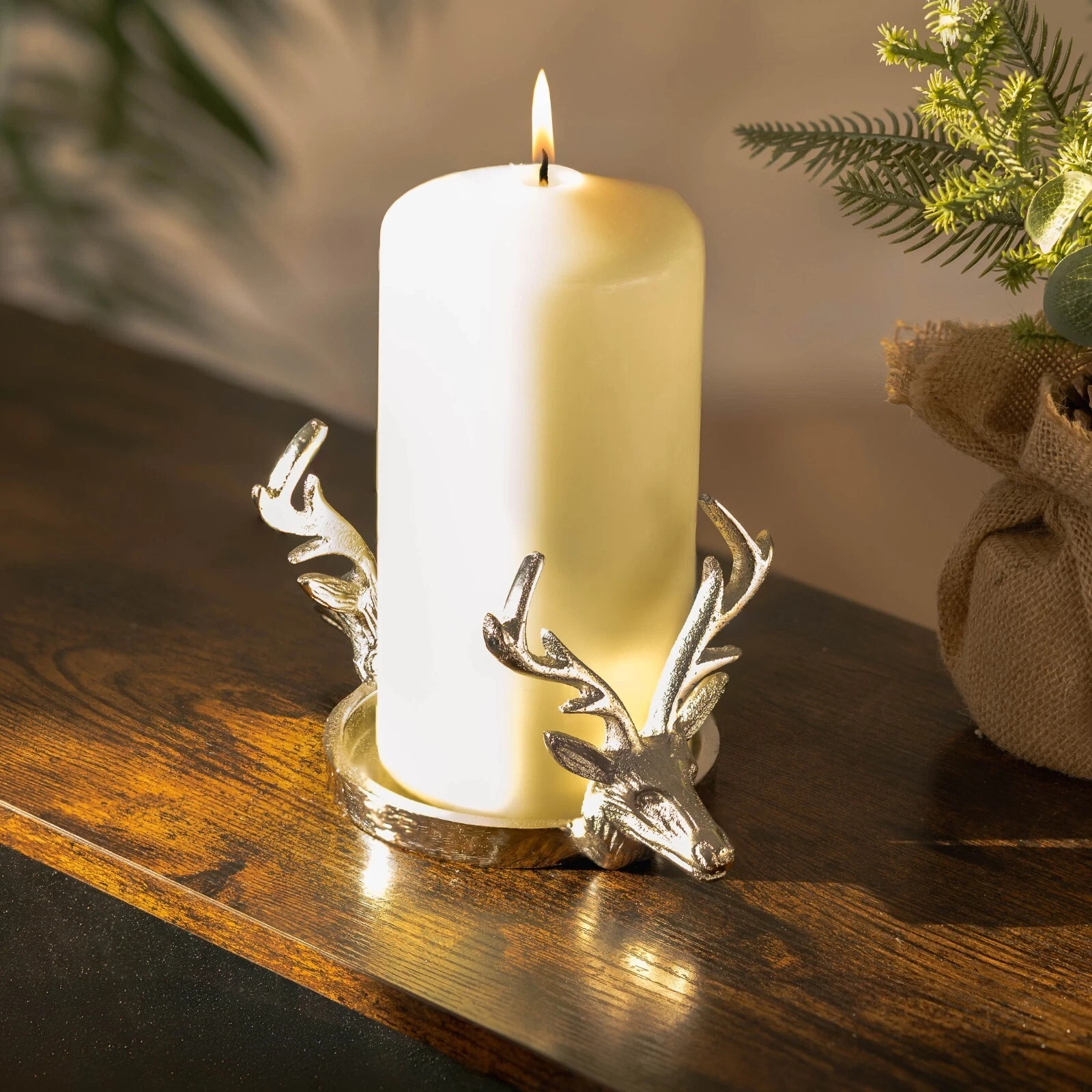 Silver Stag Candle Holder Pillar Reindeer Home Decor Metal Christmas Ornament