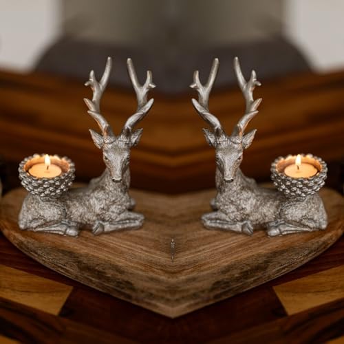 Marco Paul Set of Two Resin Stag Tealight Holders Candle Holder Traditional Christmas Decorations Deer Antler Table Decoration Centrepiece Tea Light Candle Holders Decorative Reindeer Ornament 2pc