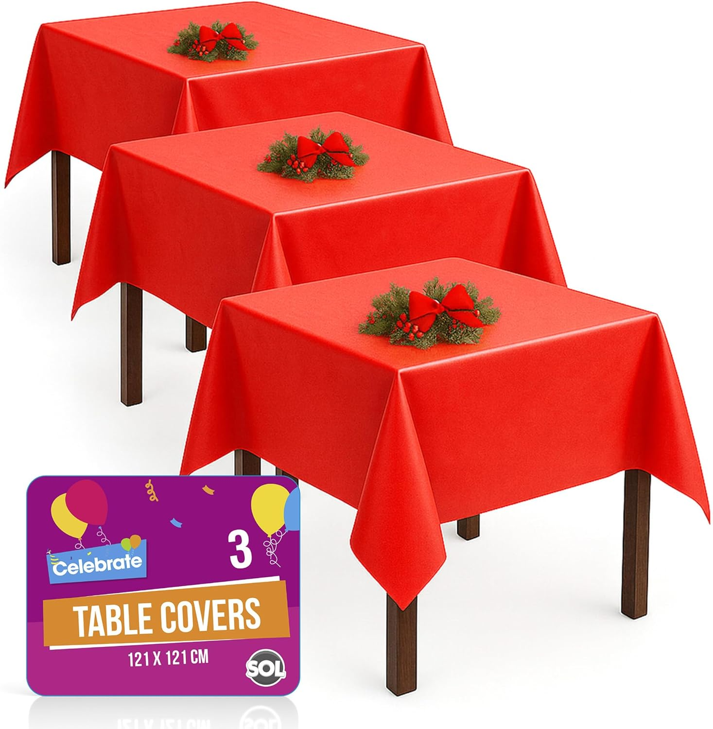 3Pk Red Table Cloths Disposable 121X121Cm Durable Plastic Cover for Christmas Ch