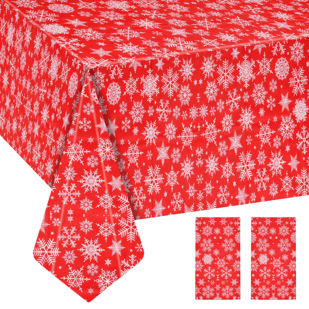 2PCS Red Christmas Table Cloths 137x274cm Waterproof Plastic Rectangular Table Cover Snowflakes