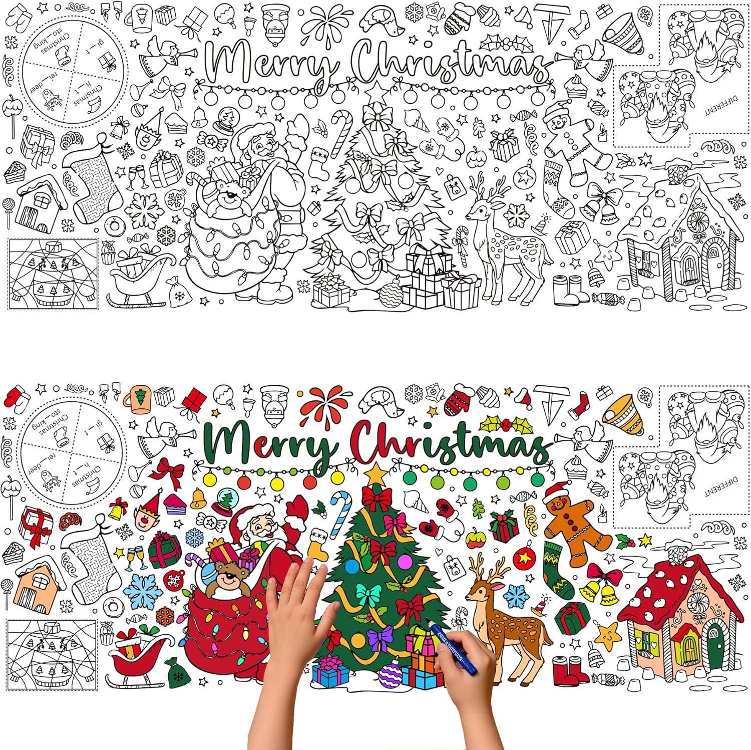 Christmas Colouring Tablecloth Crafts for Kids, Xmas Colouring Table Cloths,Gia