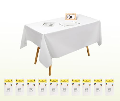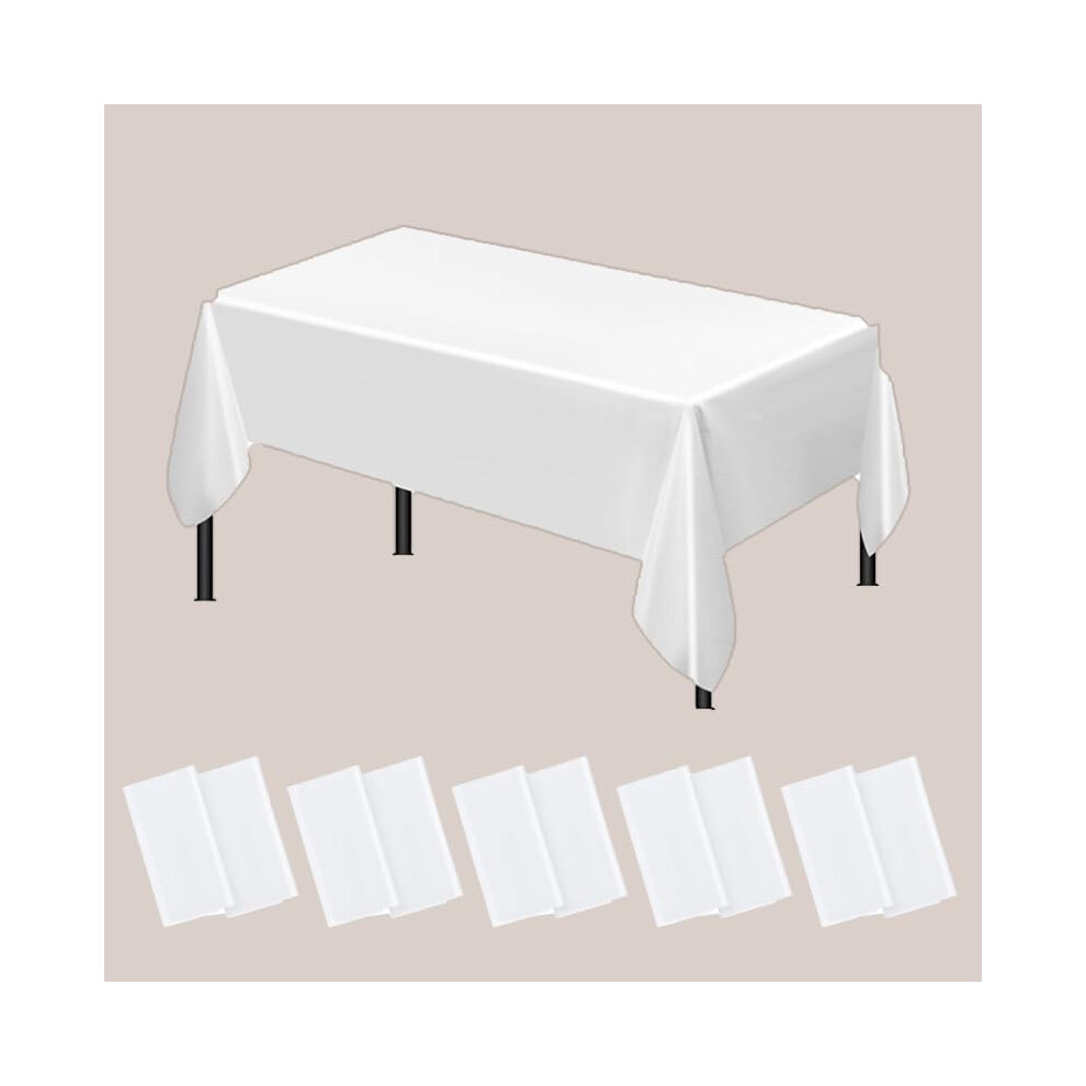 Yjia Table Cloths 10Pcs Party Table Covers, 137x274cm Plastic Rectangular Tablecloths for Picnic, Halloween, Christmas, Baby Shower, Graduation, Wedding, Birthday Party (White)