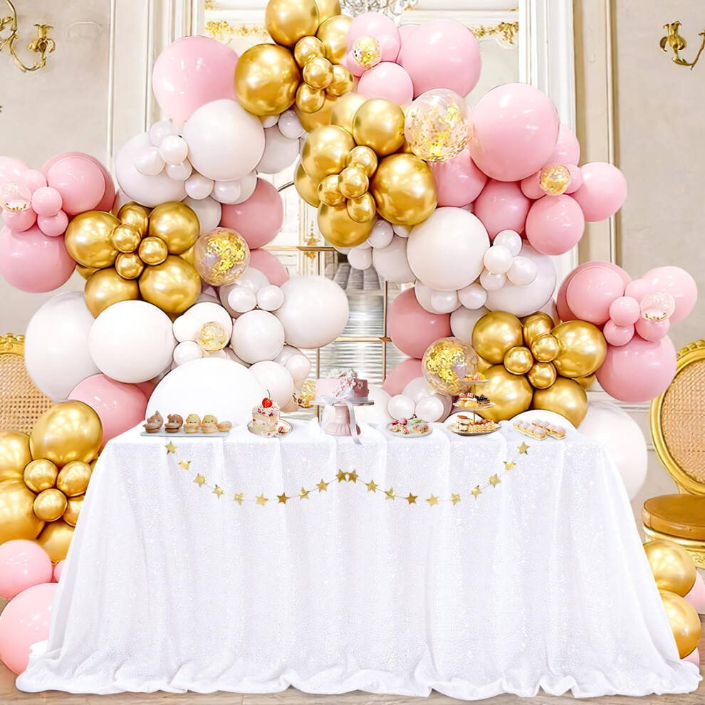QueenDream White Wedding Tablecloth 90x90 Inch Sequin Fabric Table Cloths Rectangle Sparkle Anniversary Banquet Halls Christmas