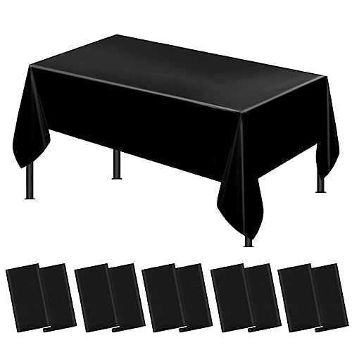 GJIE Table Cloths 10Pcs Party Table Covers, 137x274cm Plastic Rectangular Tablecloths for Picnic, Halloween, Christmas, Baby Shower, Graduation, Wedding, Birthday Party (Black)