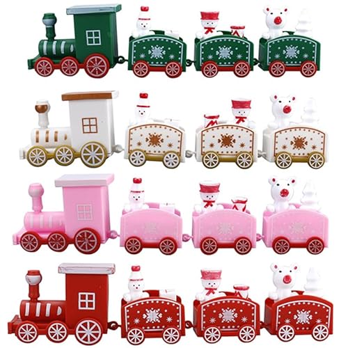 BESPORTBLE Mini Plastic Christmas Train Set, 4 Pcs Miniature Xmas Train Ornaments with 3 Carriages for Xmas Party Favors Kids Kindergarten Christmas Table Decor
