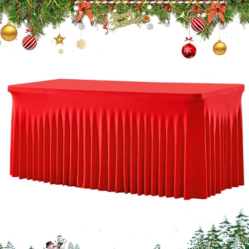 Christmas Table Skirt - 6ft Christmas Red Tablecloths for Rectangle Table,Water-Resistant Festive Tablecloths for Events Buffet Classroom Banquets Graduation Commercial Reception Halloween