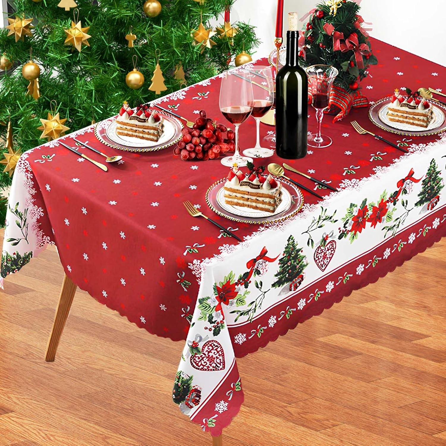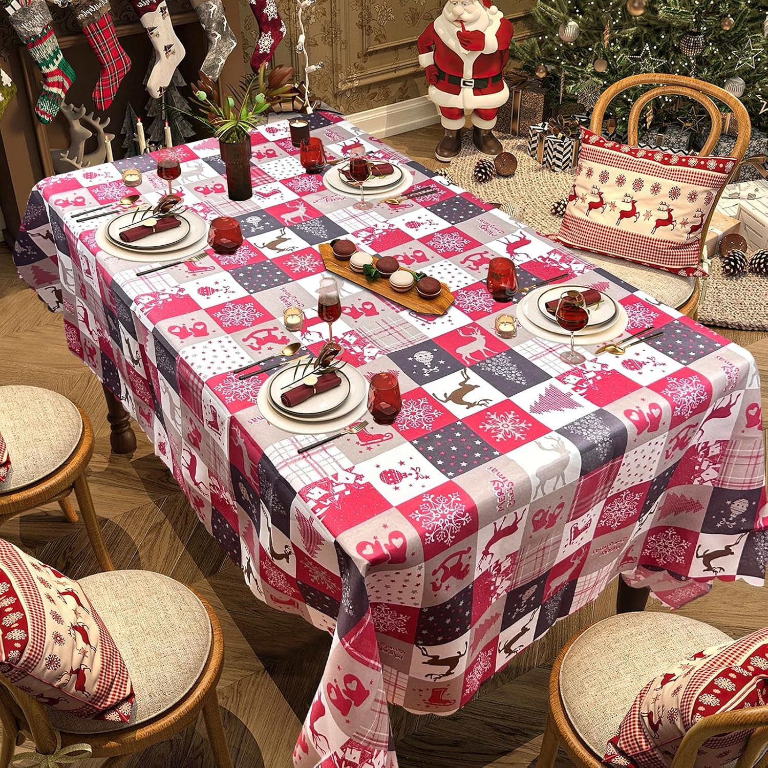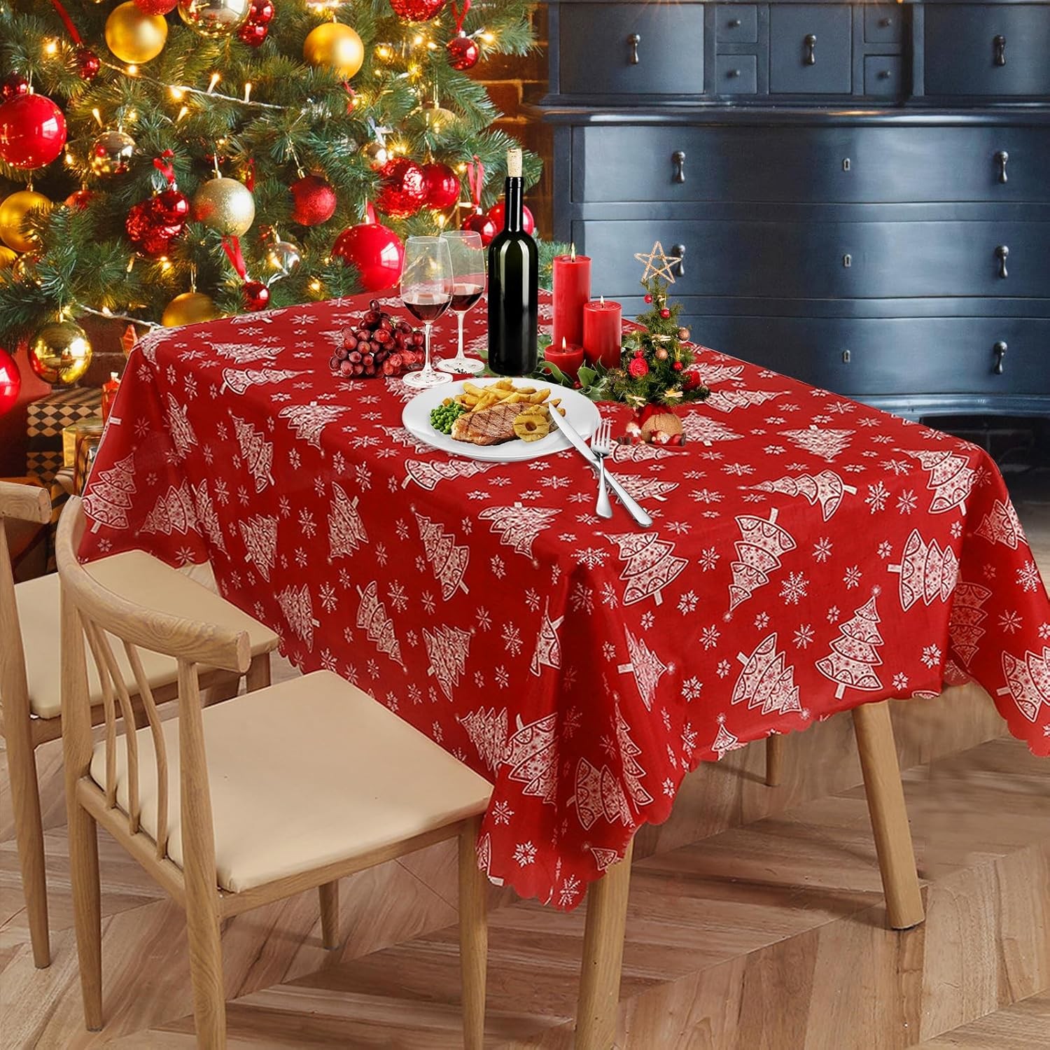 Christmas Tablecloths Rectangular Washable Table Cover Stain-Resistant for New