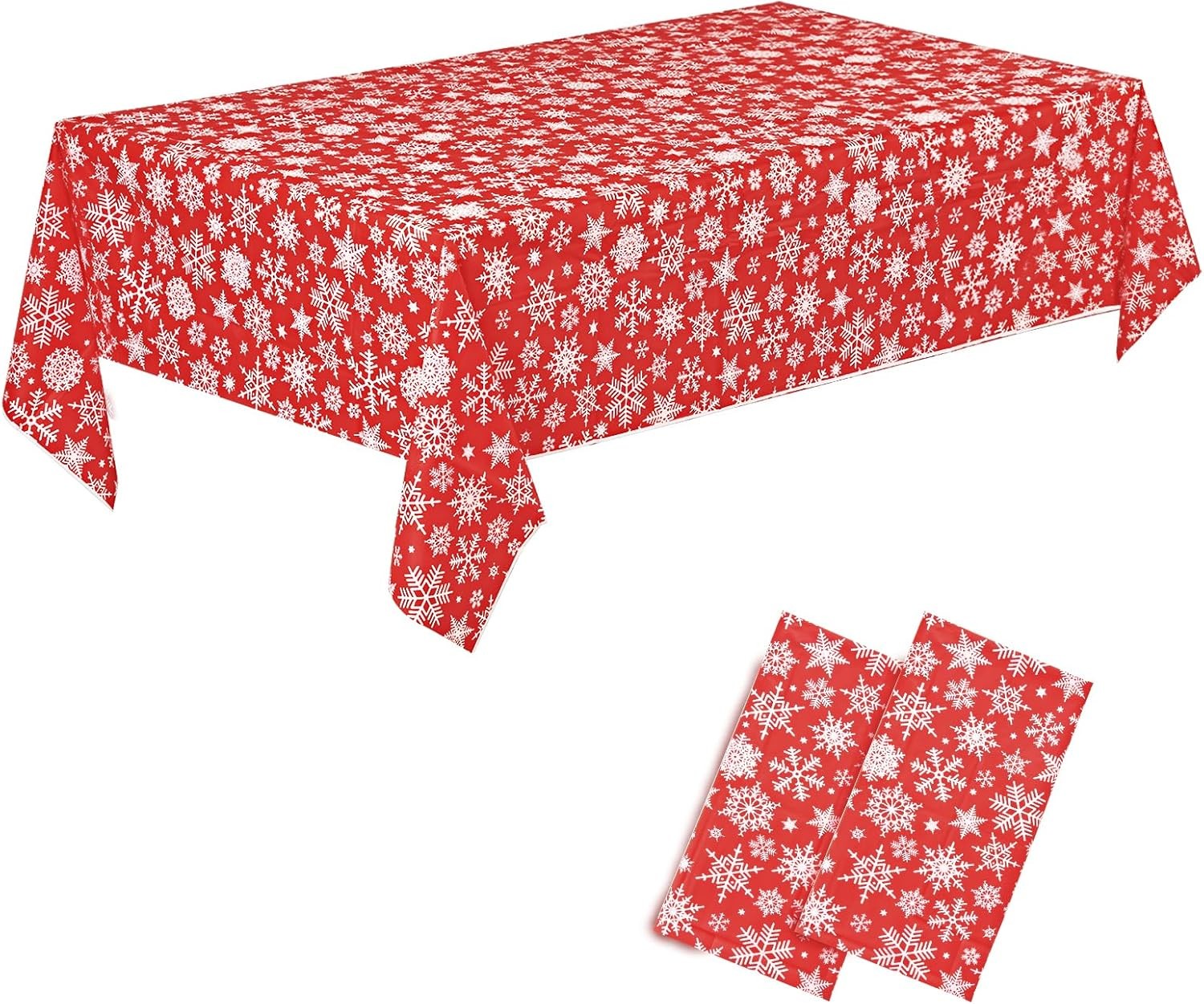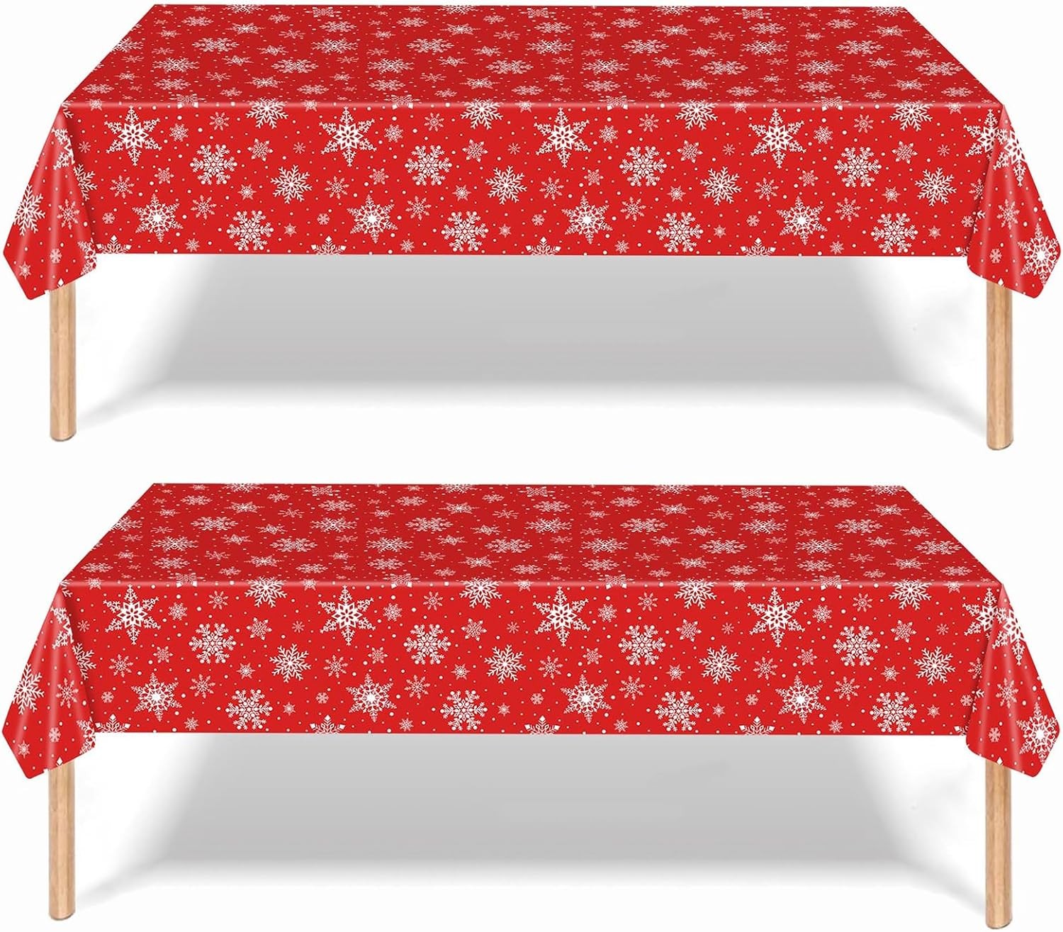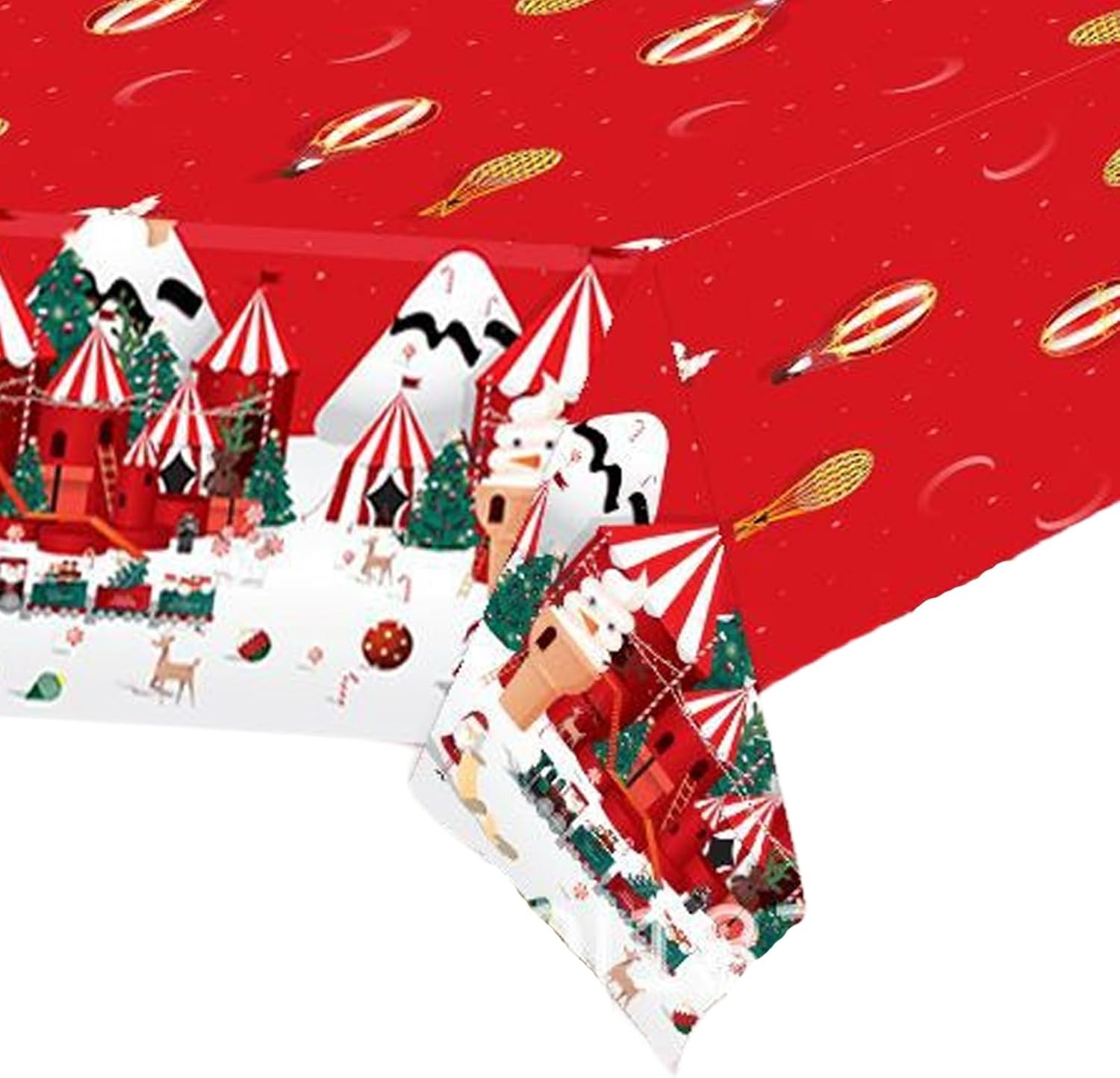 2pcs Plastic Christmas Tablecloths Party,137 * 274cm Large Xmas Table Cloth Rec