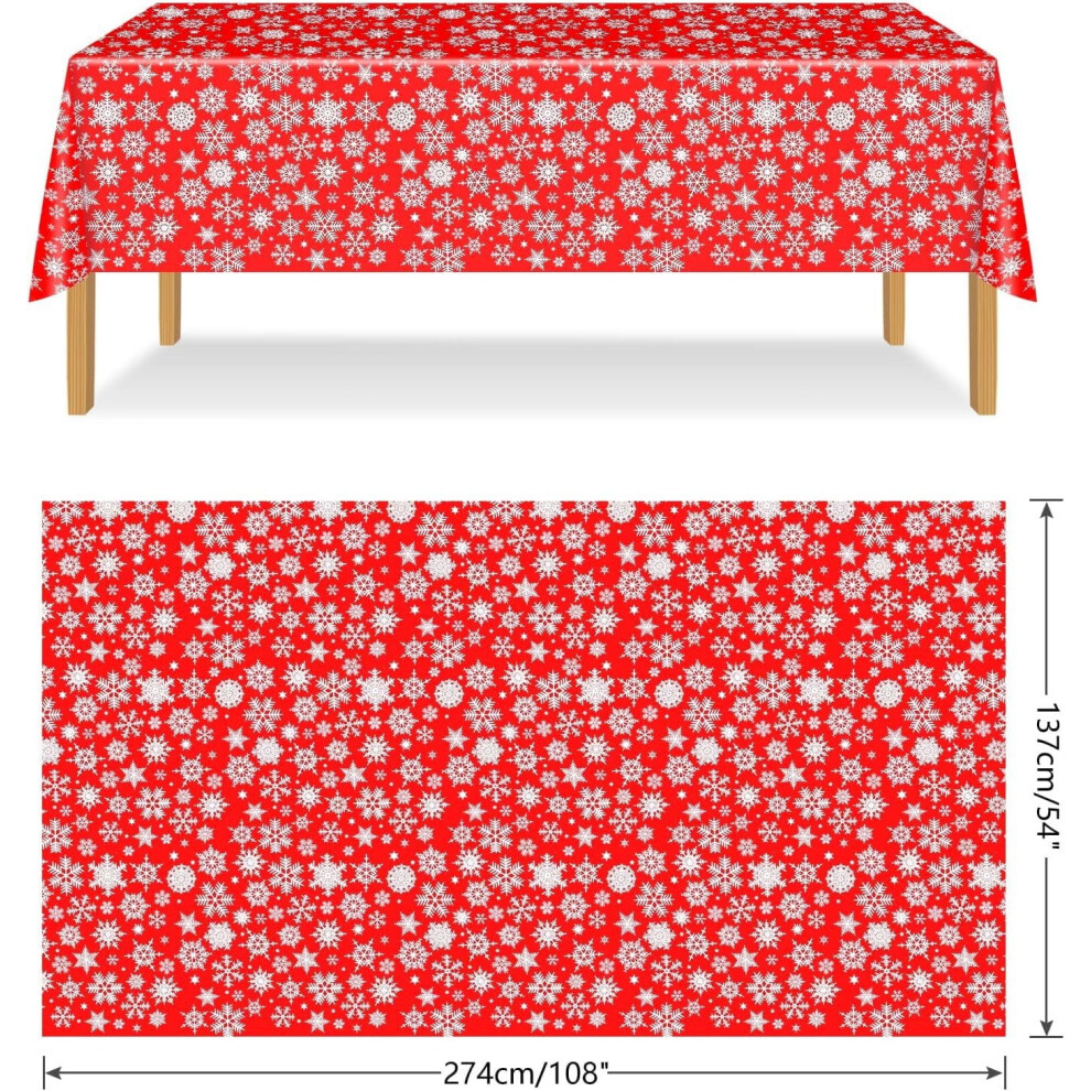 Antqov Plastic Snowflake Christmas Tablecloths 54x108" Rectangle, Disposable Holiday Table Cover for Party, Home, Picnic, Dinner, Compatible with