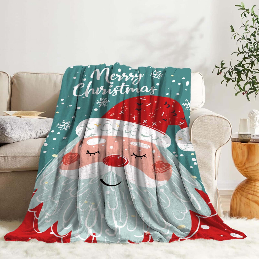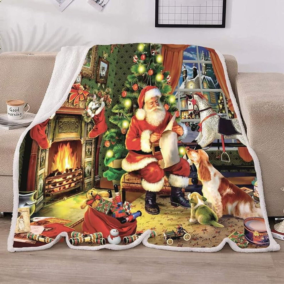 Christmas Blankets and Throws, Holiday Santa Claus Fleece Sherpa Throw for Couch, Soft Warm Cozy Flannel Blanket (40x50), compatible with winter