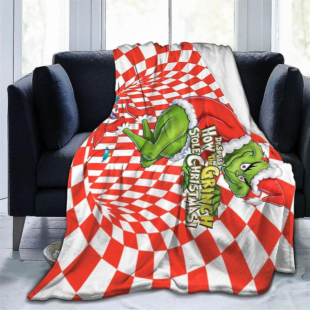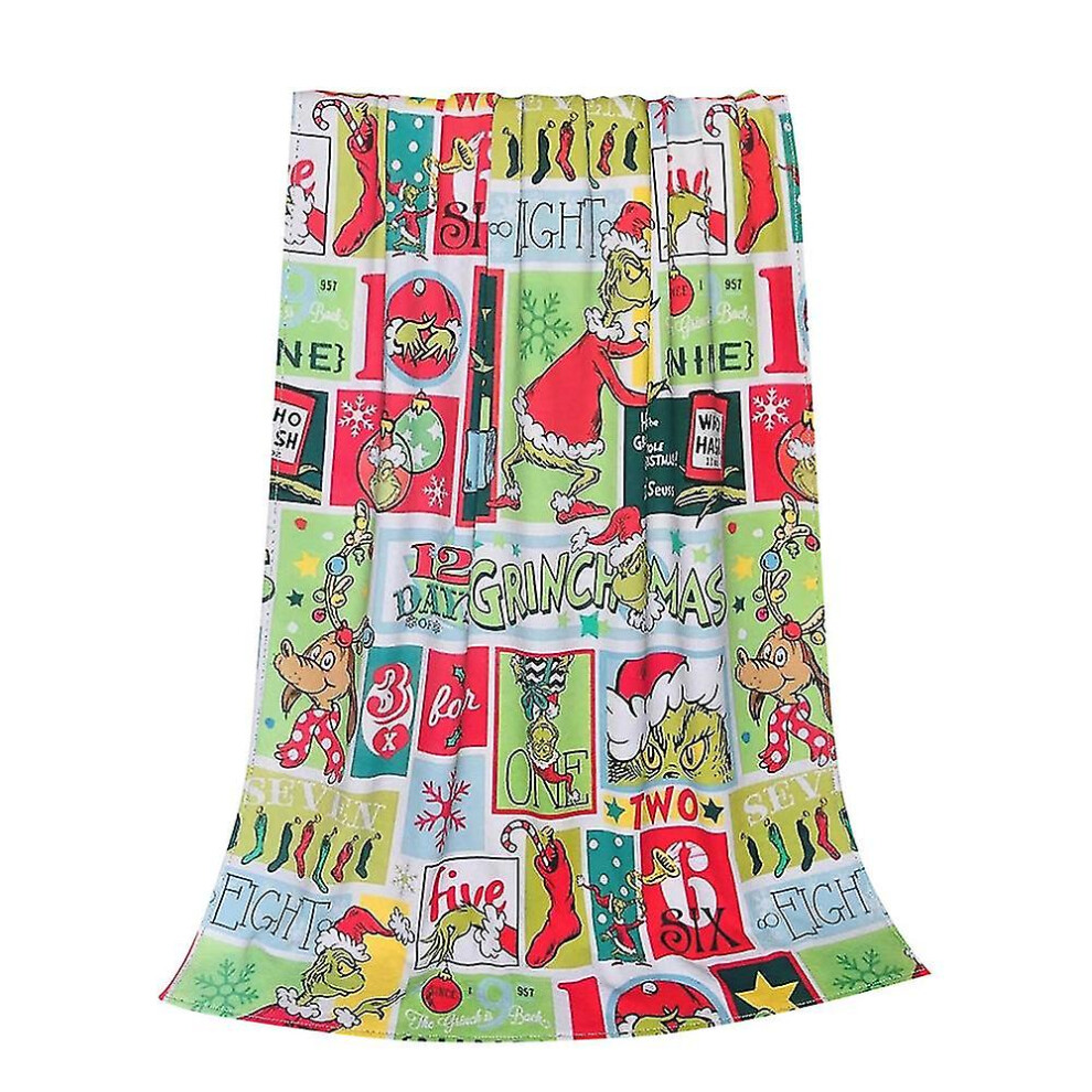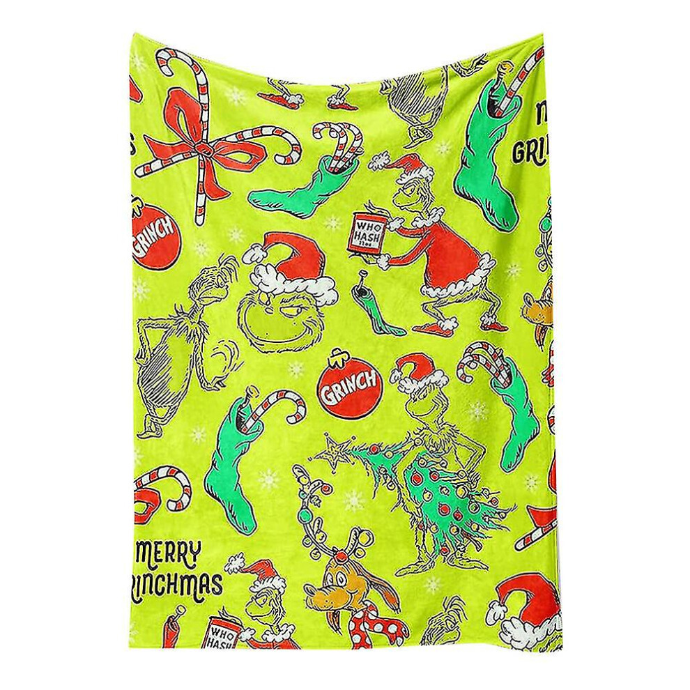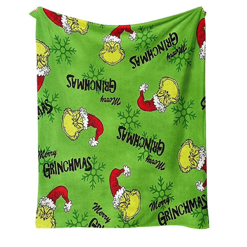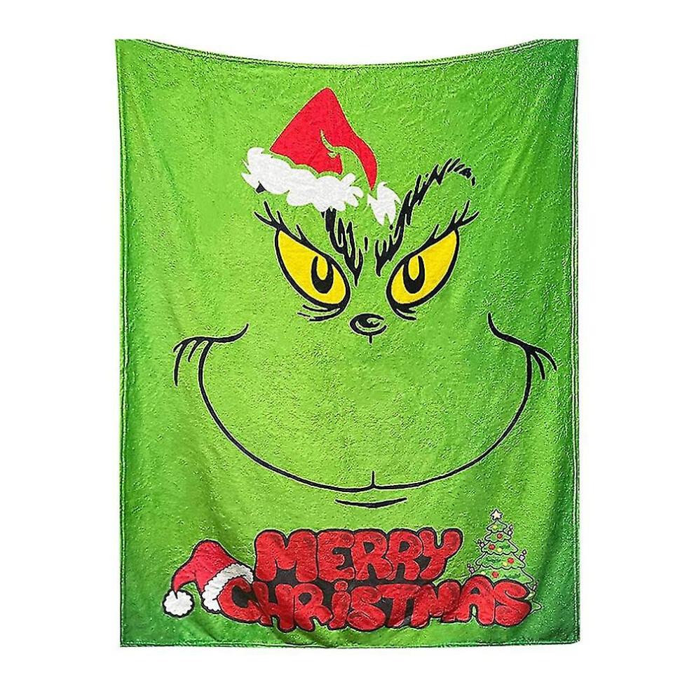 (A) Christmas Grinch Blankets And Throws The Green Monster Fall Soft Blanket, Green Elf Blanket Plush Travel Blankets For Coach Bed