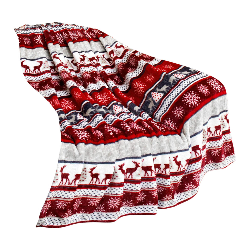 Cozydoze Xmas Blankets - Fleecy Throws. Christmas Trees, Reindeer, Owls, Winter Snowflakes In Red, Blue, Silver Grey, Gold, White. Warm & Cosy Double