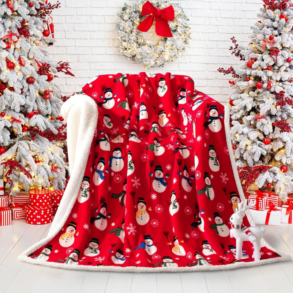 AuroraX Christmas Blankets and Throws Cozy Breathable Extra Soft Microfiber Throws Christmas Living Room Bedroom Decor Snow-man