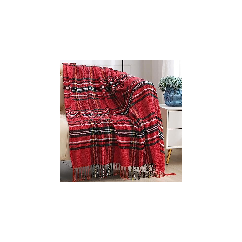 Throw Blanket with Tassels for Sofa Bed Car Travel Cover,Cozy Warm Red Tartan Plaid Pattern Check Christmas Blanket Throws Home Decorative Blankets