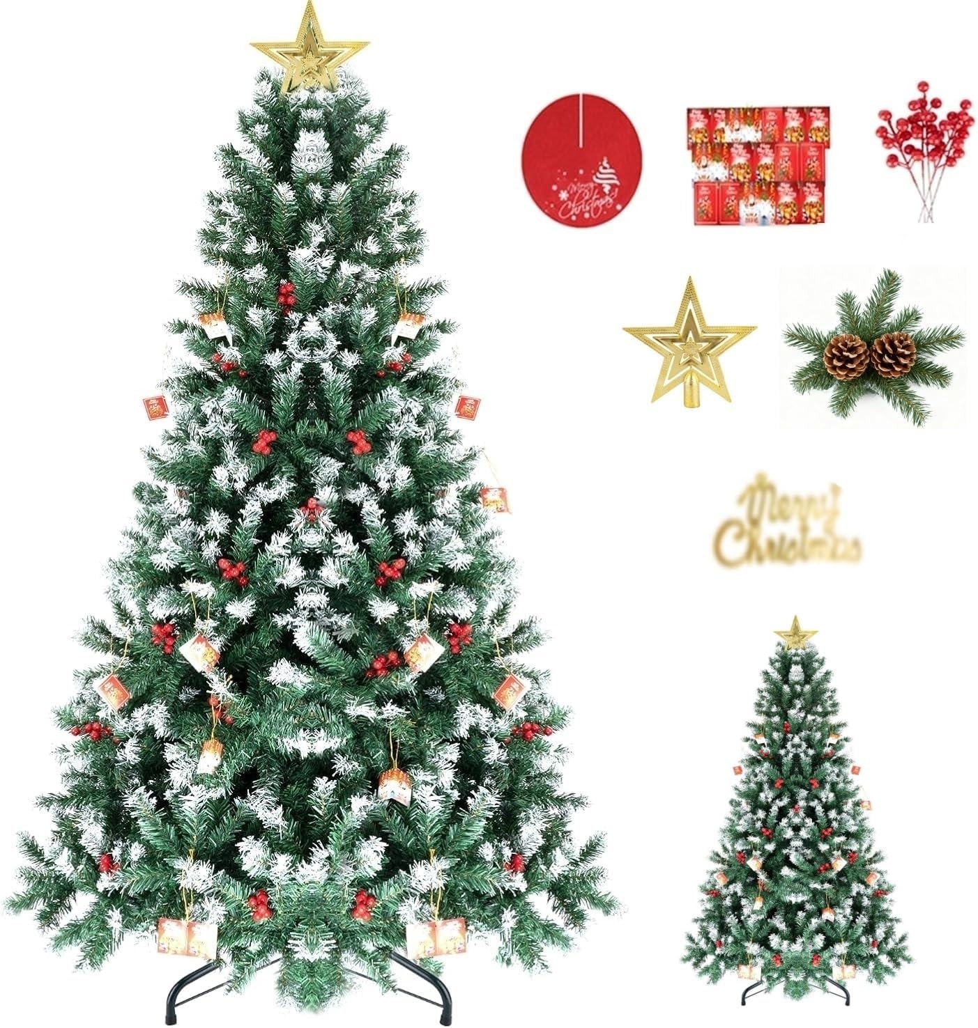 Snow Christmas Tree, 6ft Artificial Snow Flocked Christmas Tree, White and Green Xmas Tree with 650 Tips, Solid Metal Legs, Christmas Decorations for Indoor Outdoor 1.8m