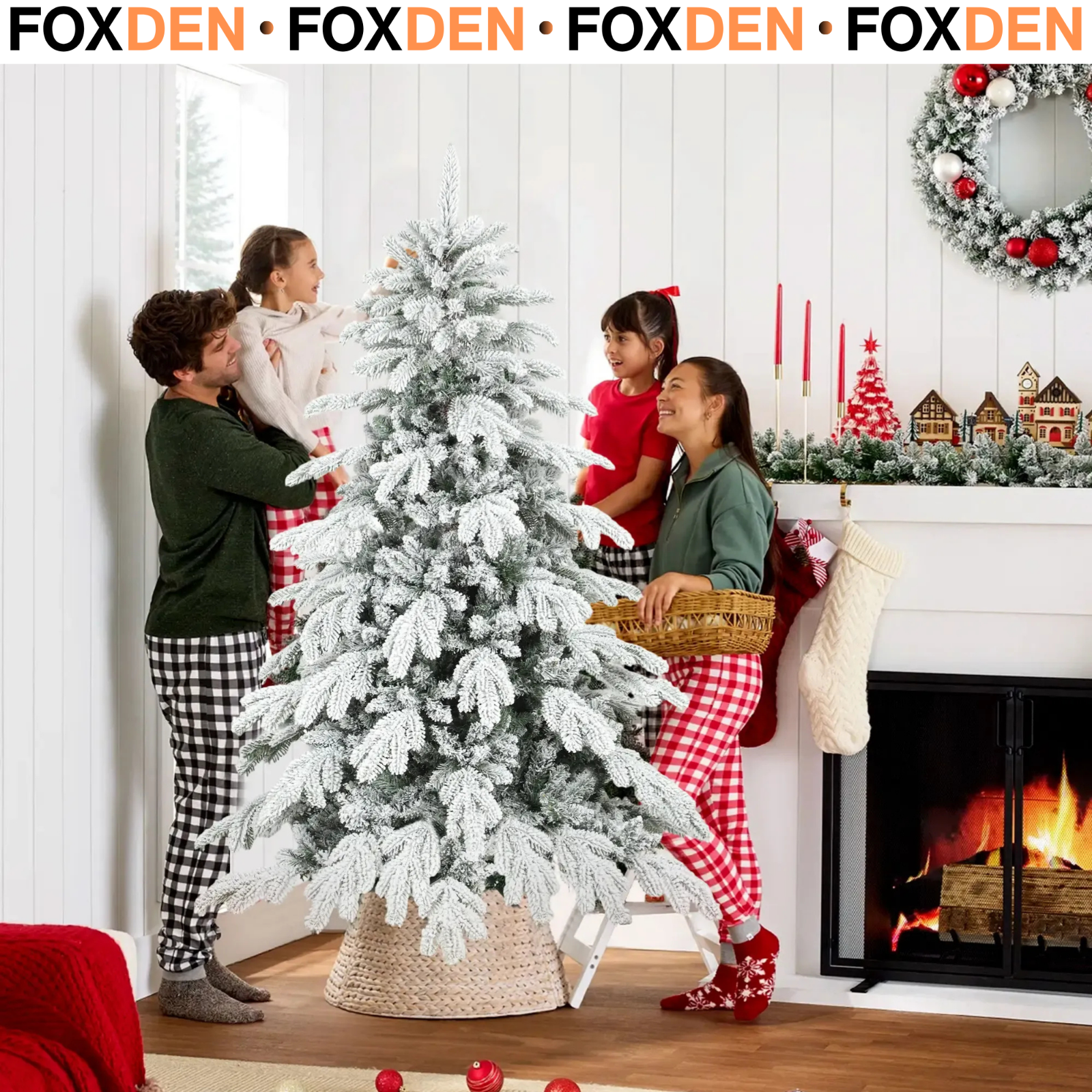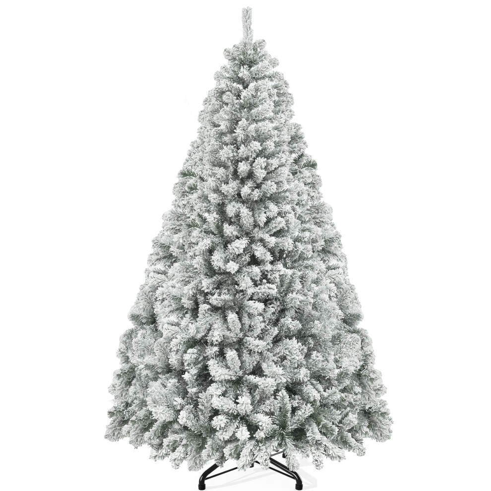 Snow Flocked Christmas Tree 6ft Realistic Tips Hinged Xmas Tree White Branches