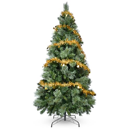 Artificial Christmas Tree, 6FT Holiday Xmas Tree 1400 Branch Tips, Upgraded Metal Base, Includes 6 Different Decorations