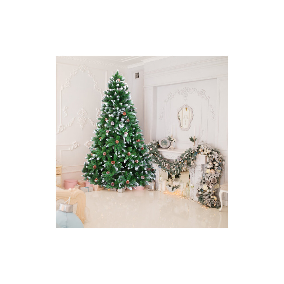 Christmas Tree 6FT 920 Branches Flocking Spray White Plus Pine Cone
