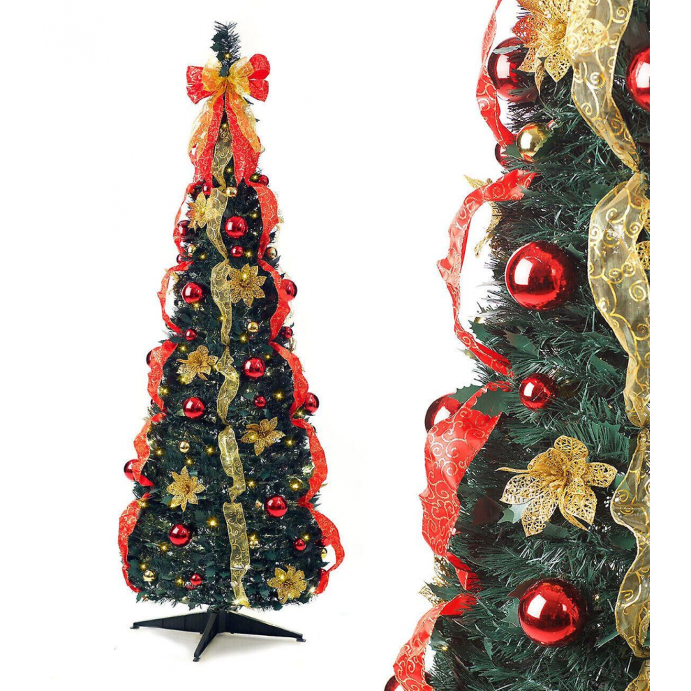 Pop-Up Red/Gold Decorated Christmas Tree Optional Timer 6ft