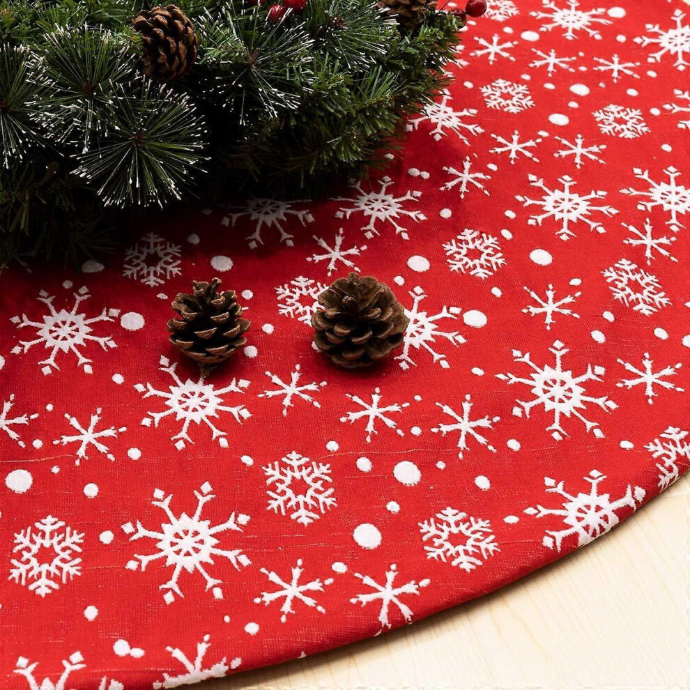 (Red) Christmas Tree Skirt Red Christmas Tree Skirts With White Snowflakes Merry Christmas Sign Xmas Tree Decor