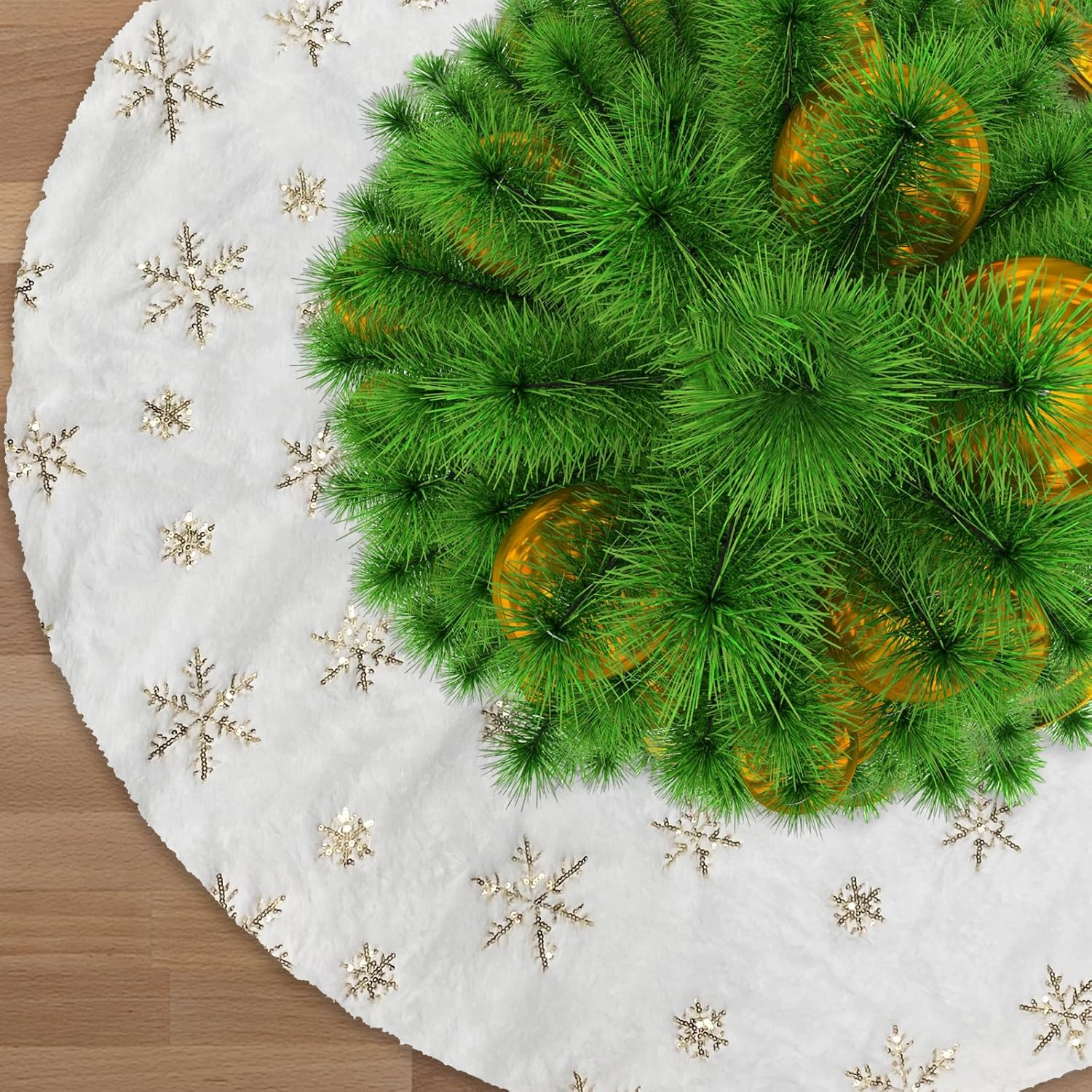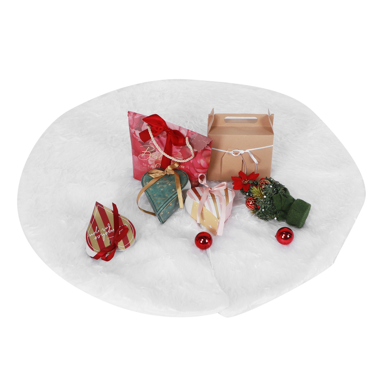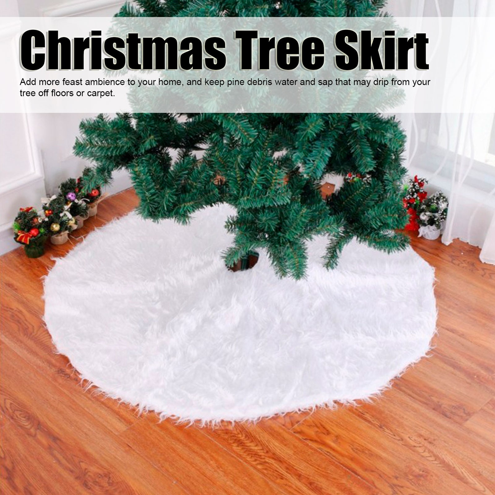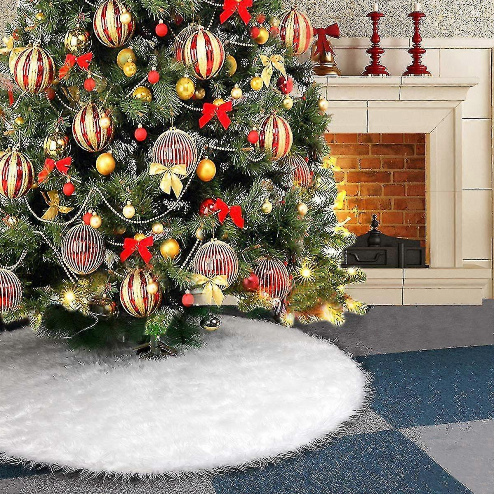 Christmas Tree Skirts, Faux Fur Large Plush White round Base Mat Xmas Decoration