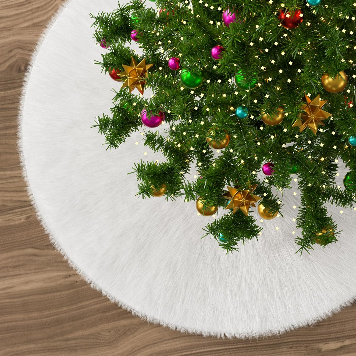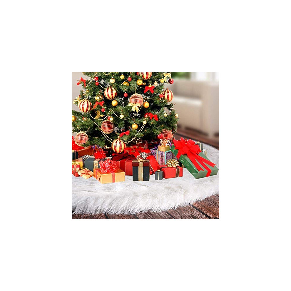 Lamin Christmas Tree Skirts, Faux Fur Large Plush White Round base Mat Xmas Decorations for Your Christmas Tree - Fits Any Size Tree (White-