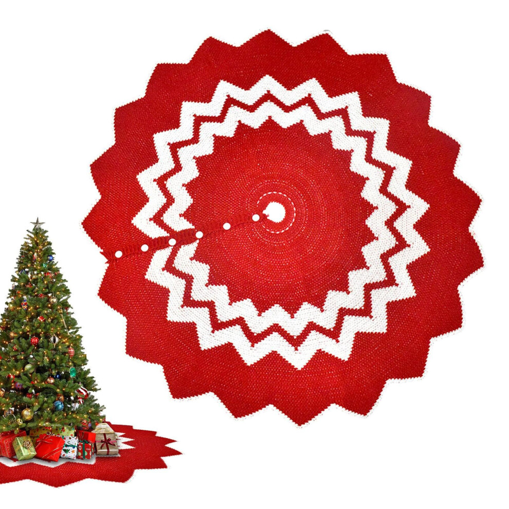 Christmas Tree Skirts 48 Inch Red and White Knitted Tree Skirt for Indoor Outdoor Home Decor Christmas Tree Stand Cover