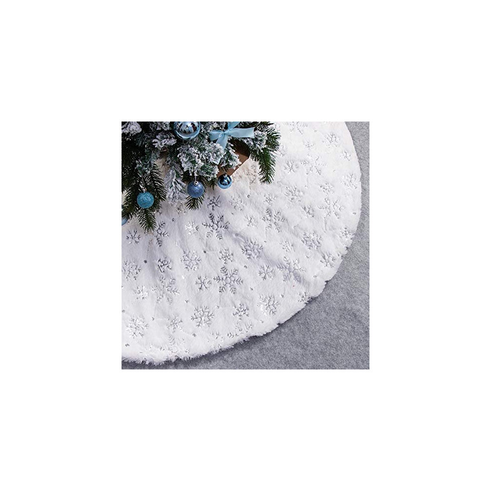 Christmas Tree Skirts, 36 Inch White Plush Double Layers Tree Skirt with Silver