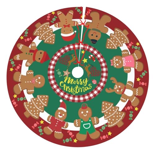 JOOCAR Merry Christmas Tree Skirt 48 Inch Gingerbread Man Candy Red Green Christmas Tree Skirts Mat for New Year Holiday Christmas Party Decorations