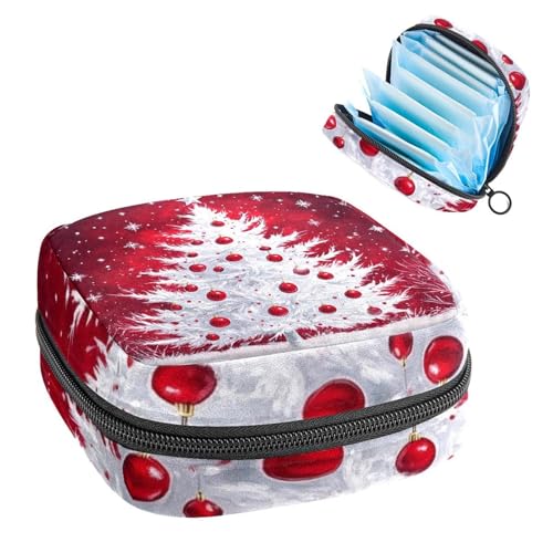Anna Cowper Period Bag Sanitary Napkin Storage Bag, Menstrual Pad Zipper Bag Portable Feminine Care Tampon Bags for Women Girl Daily Use Outdoor Travel, Christmas Tree Red