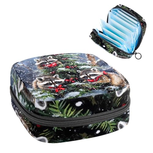 Anna Cowper Period Bag Sanitary Napkin Storage Bag, Menstrual Pad Zipper Bag Portable Feminine Care Tampon Bags for Women Girl Daily Use Outdoor Travel, Christmas Tree Raccoons