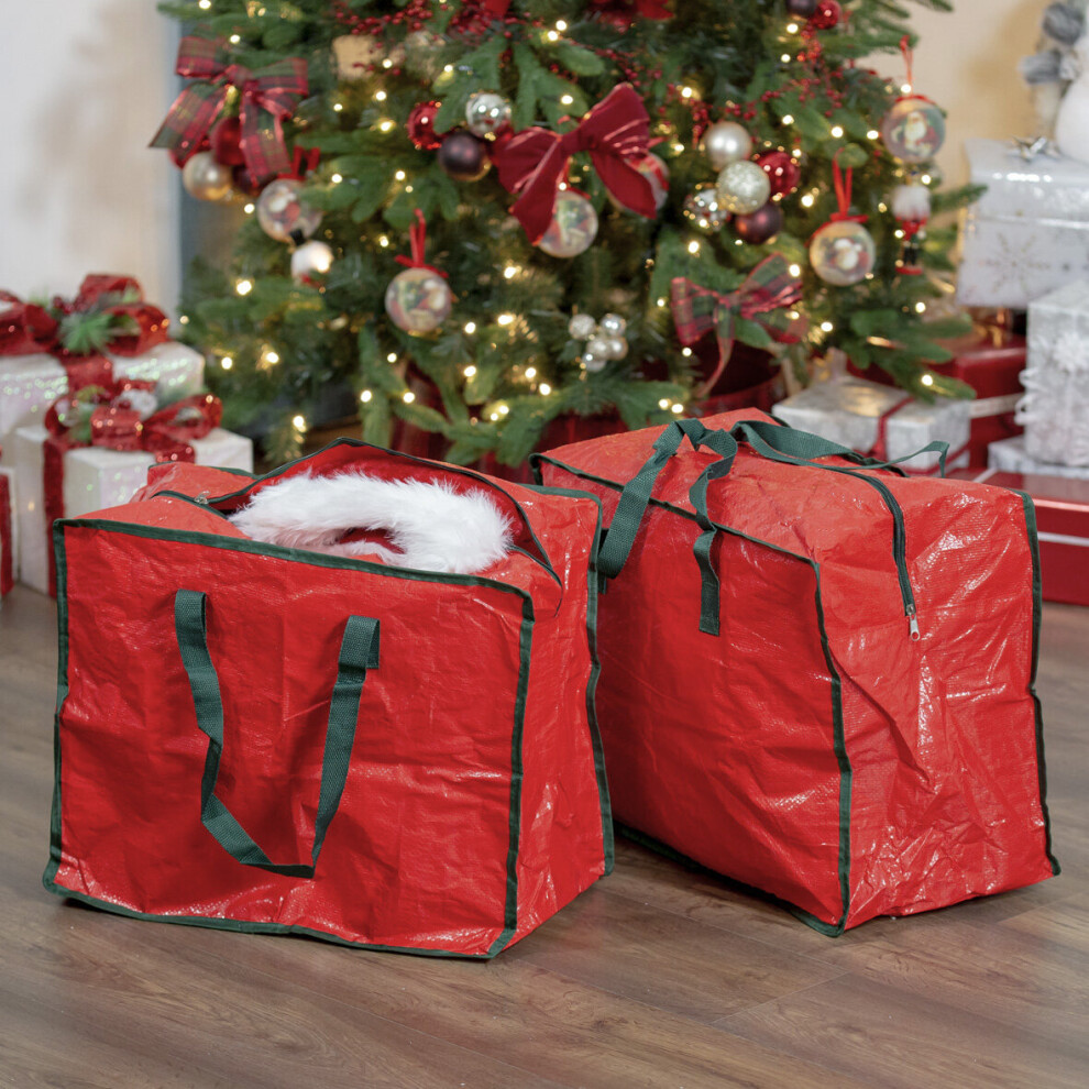 (2PC-Red L) Christmas Tree Storage Bags, Durable Heavy Duty Storage Containers with Reinforced Handles, Dual Zippers