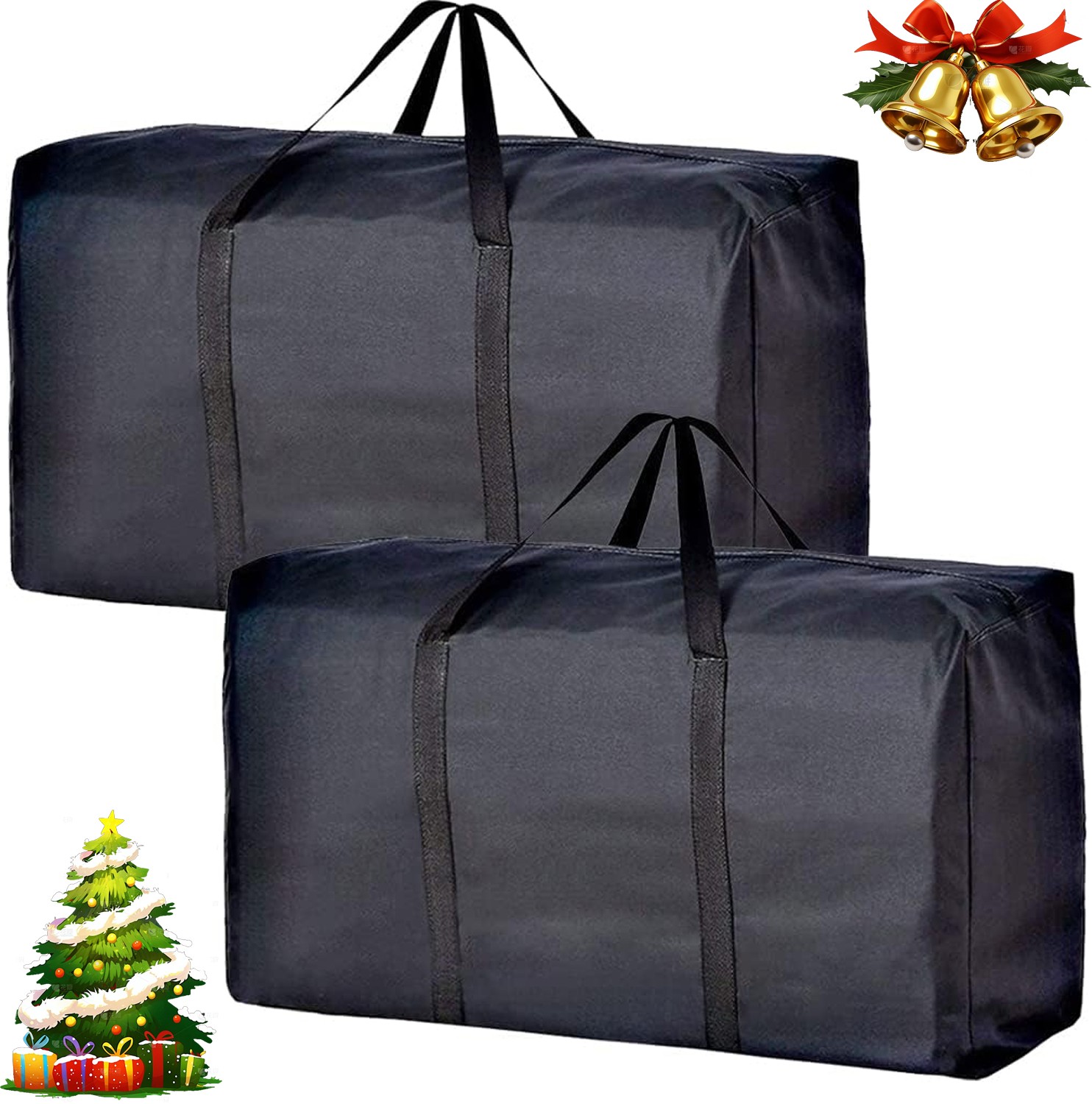The Christmas Workshop Decoration and Christmas Tree Storage Bags/Moisture and Dust Proof/Large Capacity with Zipper/Transport and Store Ornaments (2pcs Decoration Storage Bags)