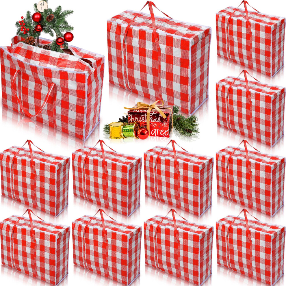 Extra Large Christmas Tree Storage Bags Set of 12 with Waterproof Protection and Sturdy Handles (Red)