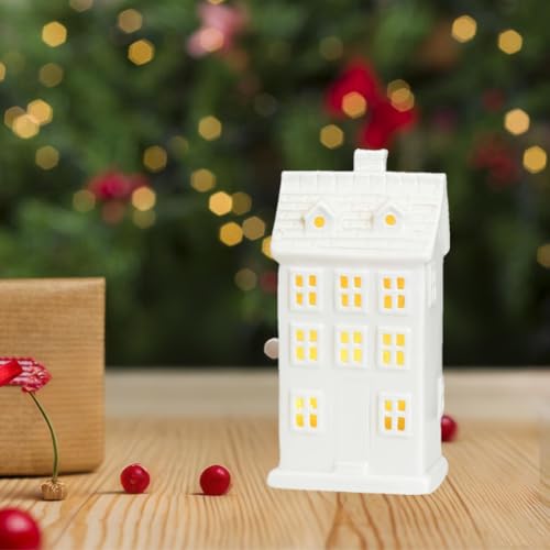 White Ceramic Christmas Village Houses, Christmas Village Figurines, Lighted Ceramic Houses, White Porcelain Village Town Houses with Built-in Led Lights, White Xmas Holiday Farmhouse Rustic Decor