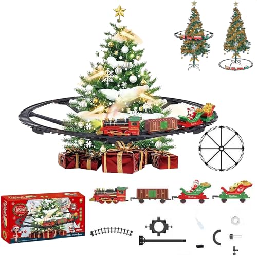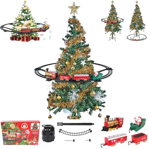 Christmas Train Set, 2 in 1 Hanging Around The Tree Train Toys with Music,Sounds & Lights, Model Trains Set for Under The Xmas Tree, Railway Kit Xmas Gifts for All Ages,Christmas Decorations (1set)