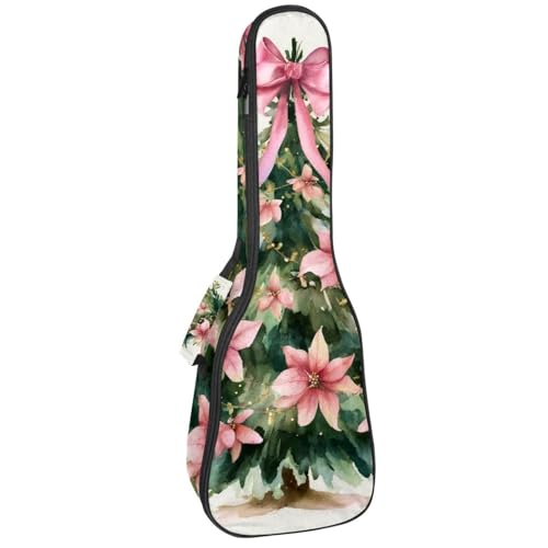 23 Inch Concert Ukulele Case Cute Christmas Tree with Pink Bow and Flowers Ukulele Padded Bag with Storage and Shoulder Straps