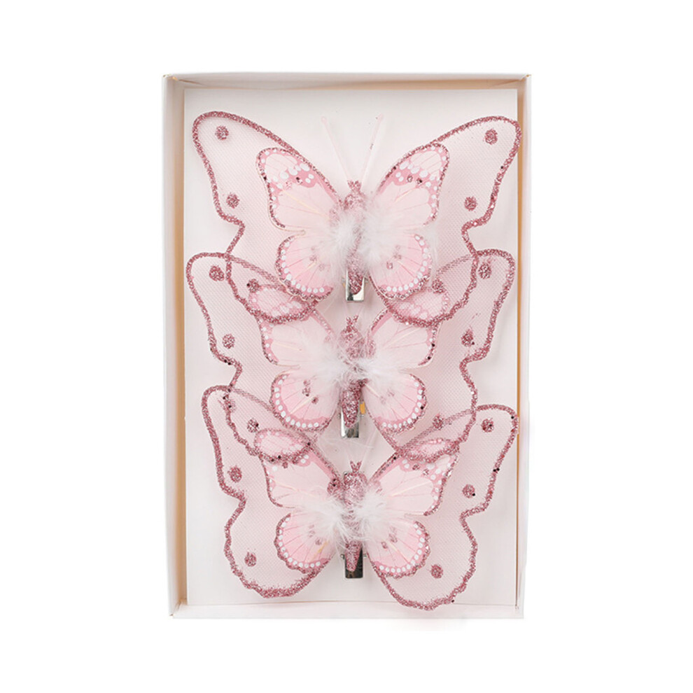 3Pcs Butterflies Christmas Tree Decorations with-Pink type B