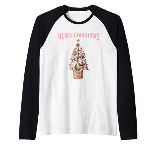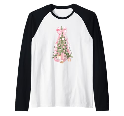 Aesthetic Christmas Tree with Pink Bow Coquette Girly Xmas Raglan Baseball Tee